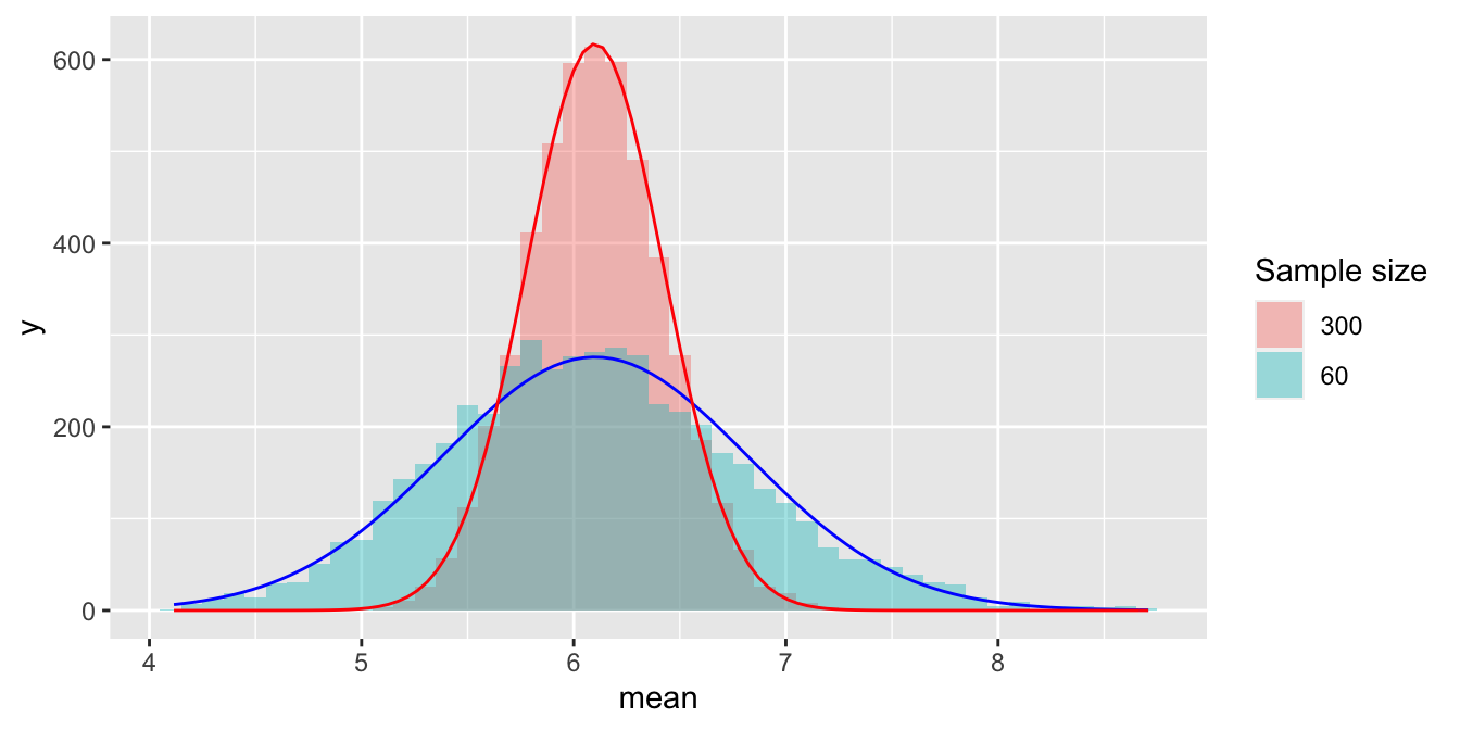 - The requirement that \(N\) be “sufficiently large” is what gives this lesson (and this whole approach to statistics) its name: large-sample inference. The basic idea behind all this math is that, by studying what happens when we collect lots of data, we can learn some things that allow us to make inferential statements that hold approximately across a wide variety of situations, even if we don’t necessarily have lots of data ourselves.