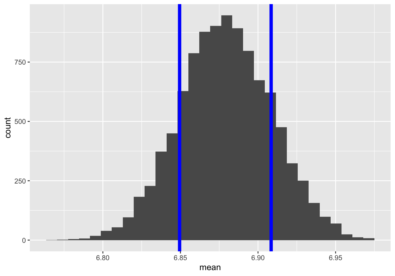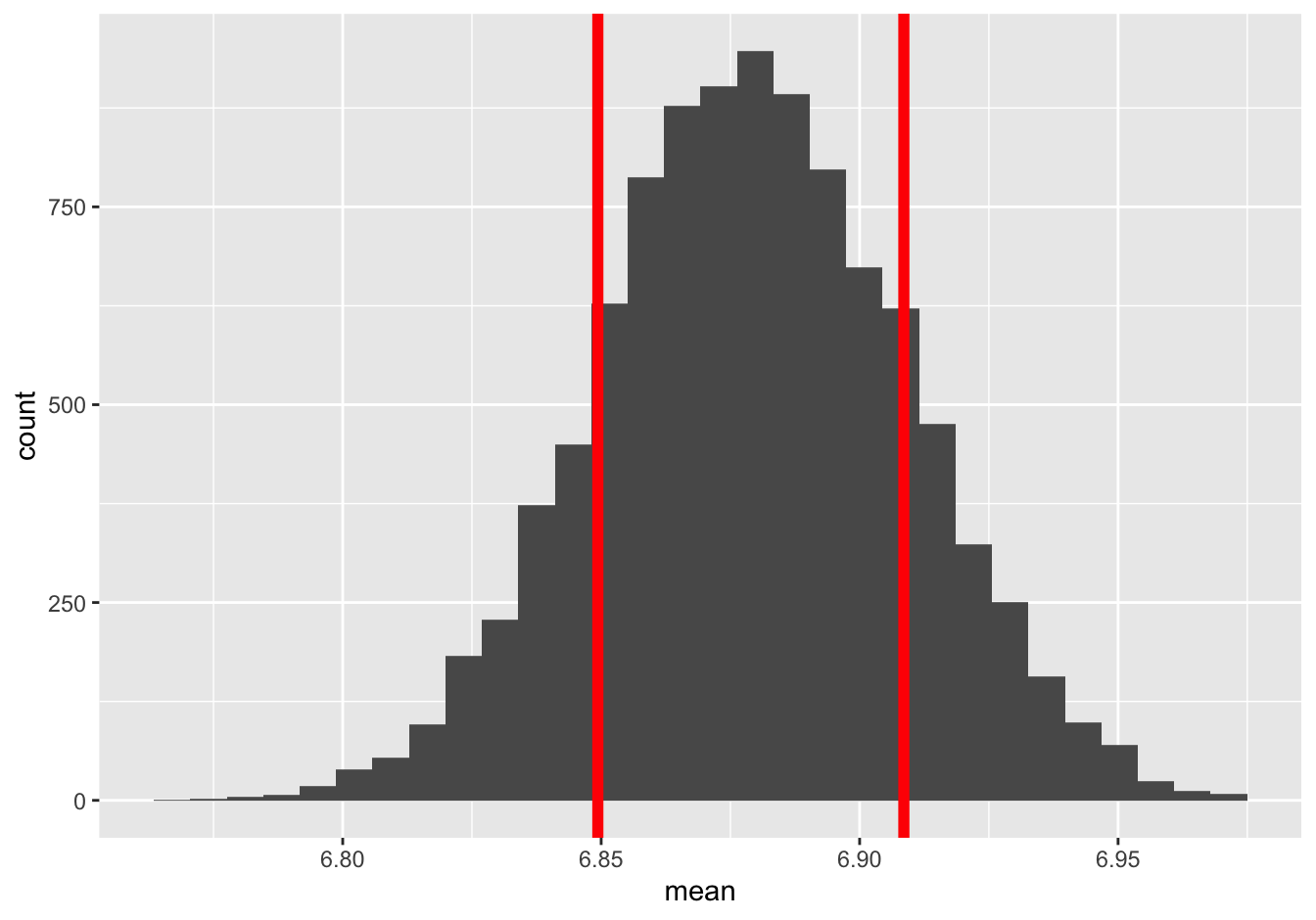 Let’s compare our large-sample confidence interval with a bootstrapped confidence interval: