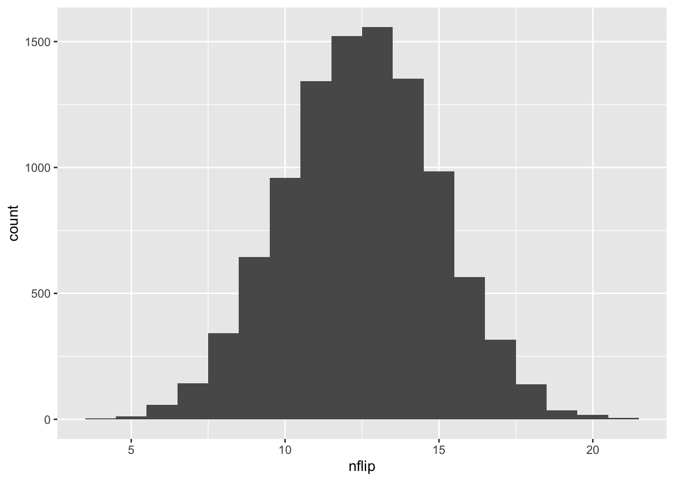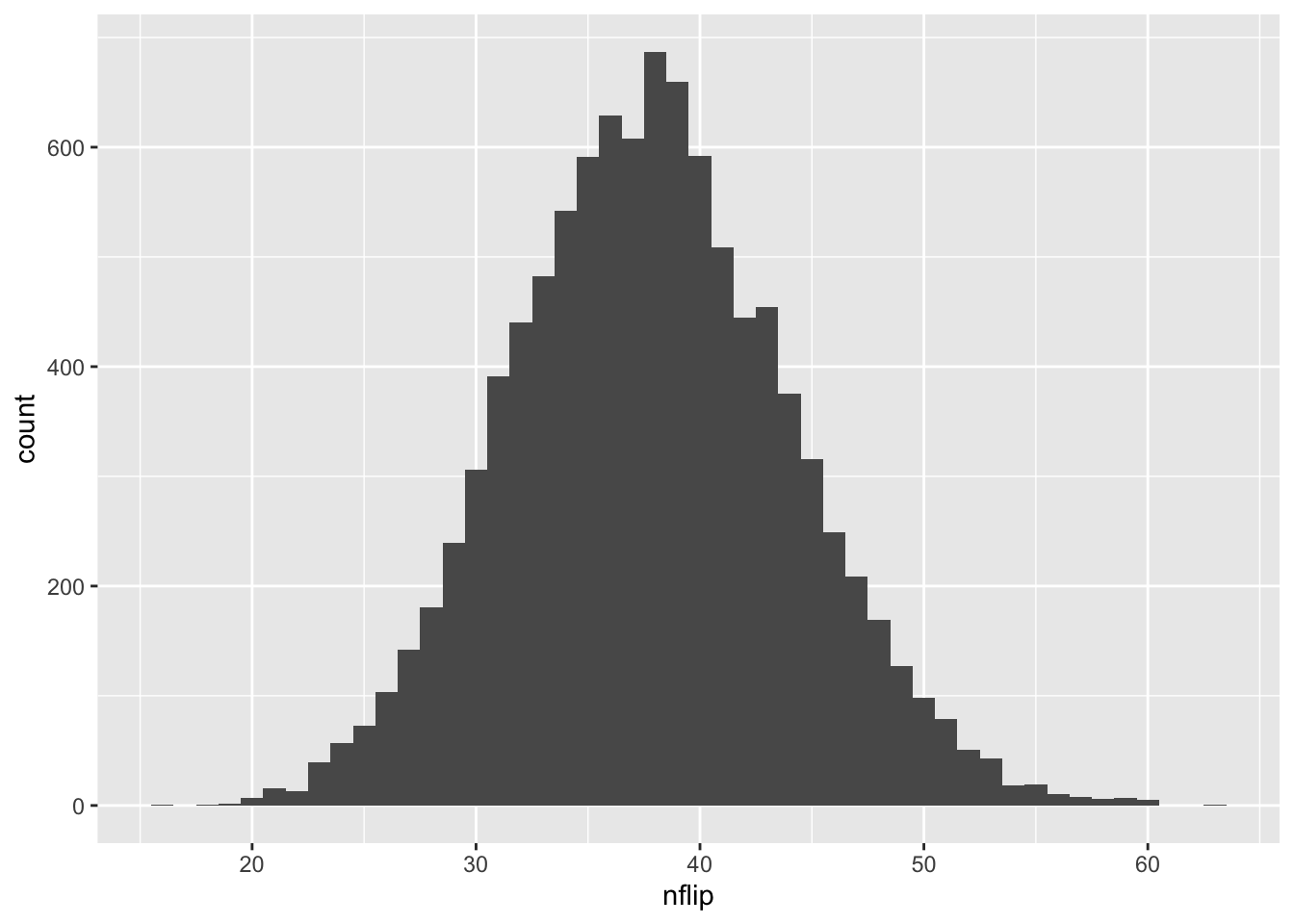 geom_histogram(aes(x=nflip), binwidth=1)