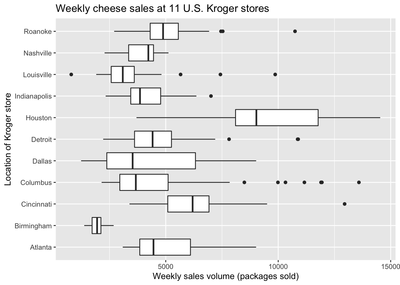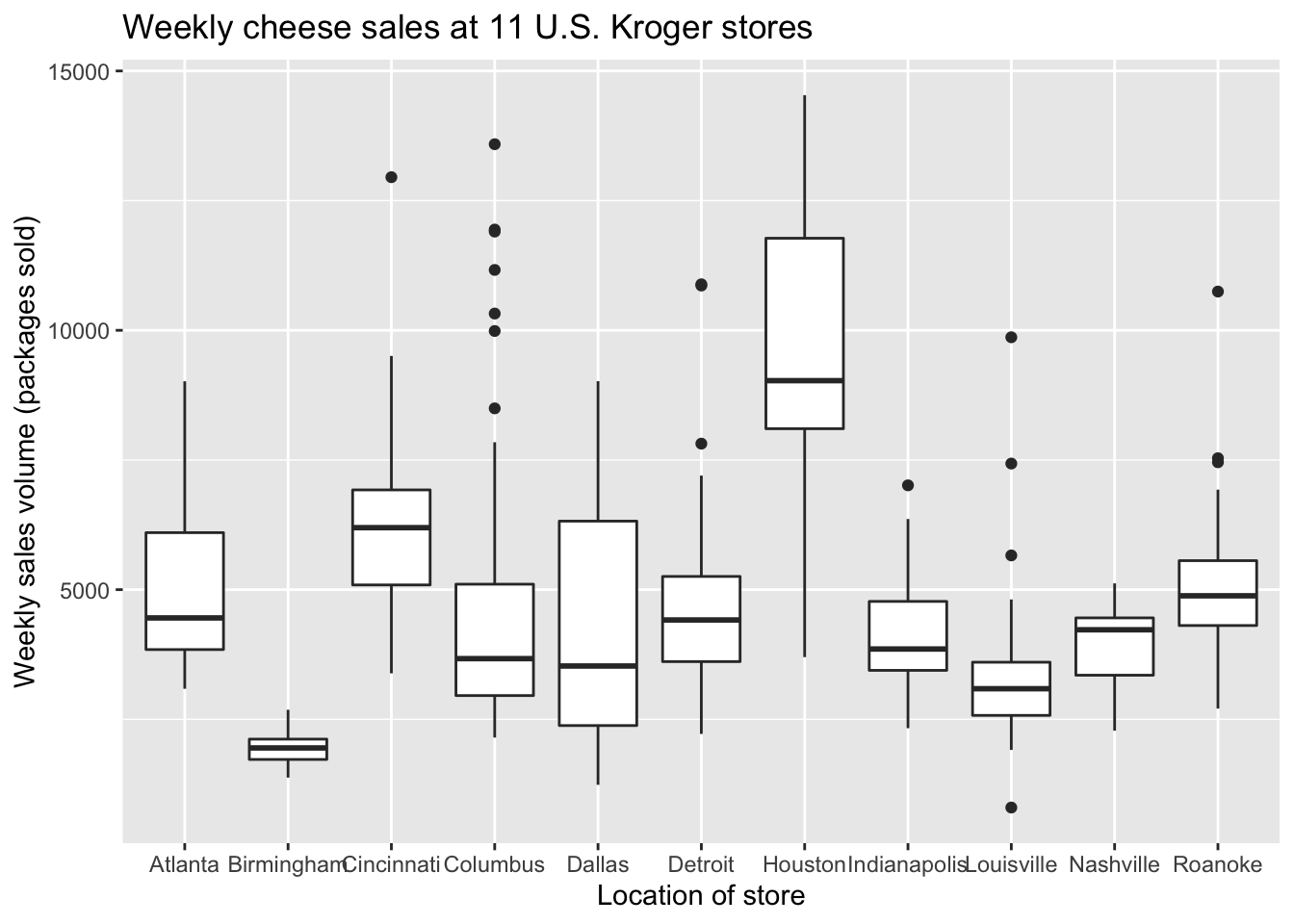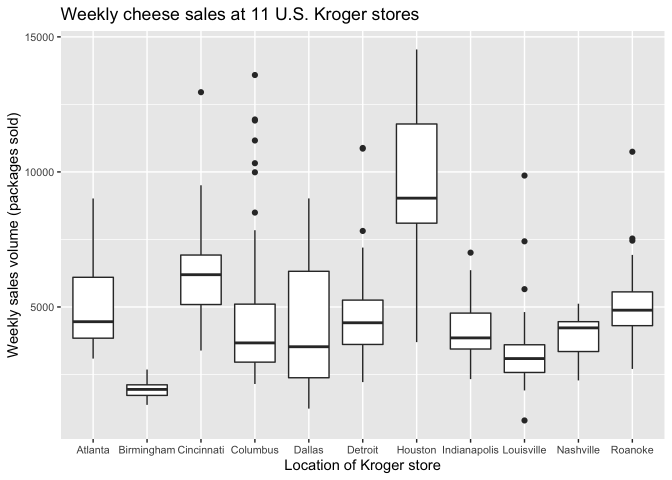 title="Weekly cheese sales at 11 U.S. Kroger stores") +