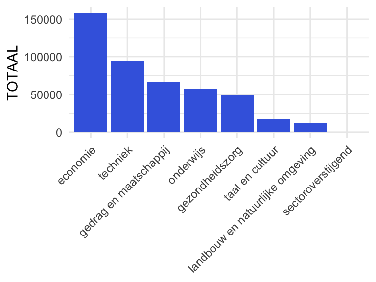 ggplot(aes(x = reorder(SECTOR, -TOTAAL), y = TOTAAL)) +