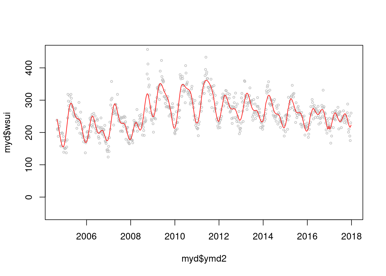 mf12 <-glm(data=mf2d, wsui ~ ns(ordweek, 22)+ns(sinx, 2)+ns(cosx, 2))