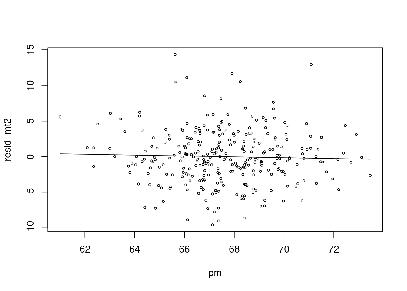 ## glm(formula = resid_mt2 ~ pm, family = gaussian)