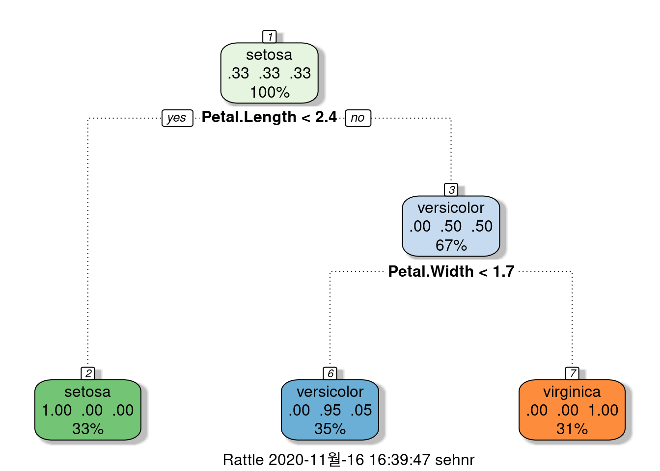 zaxis = list(title = '꽃 잎 넓이')))6.2.2.6 simple machine learning decision tree