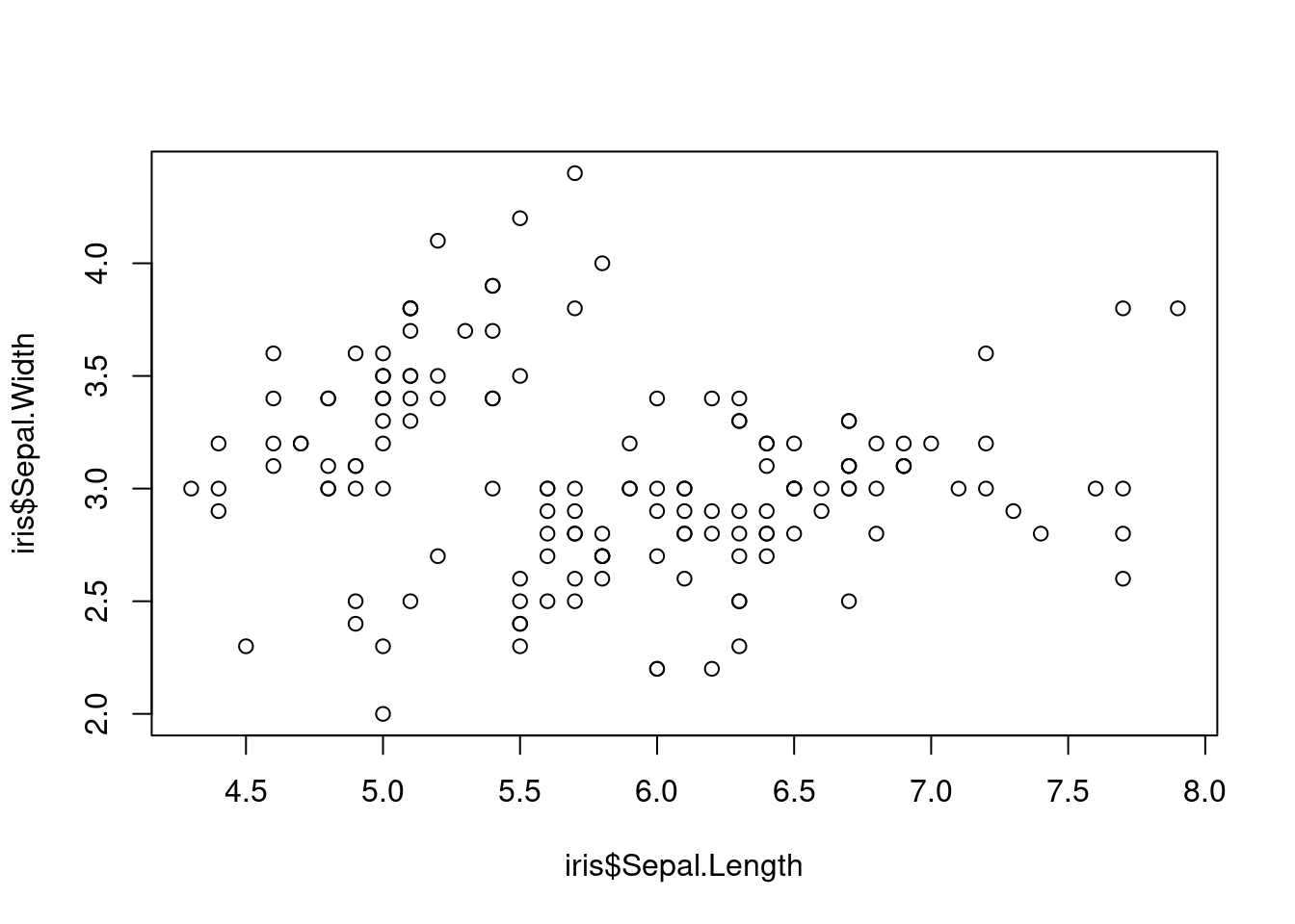 잎의 길이와 넓이에 대한 상관관계를 그림으로 나타내 보자. 자세한 것은 시각화(visualization) 파트에서 다루겠다.