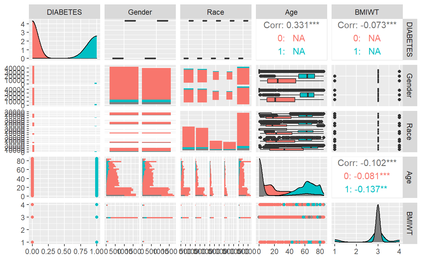 columns = c('DIABETES', "Gender", "Race", 'Age', 'BMIWT'),
