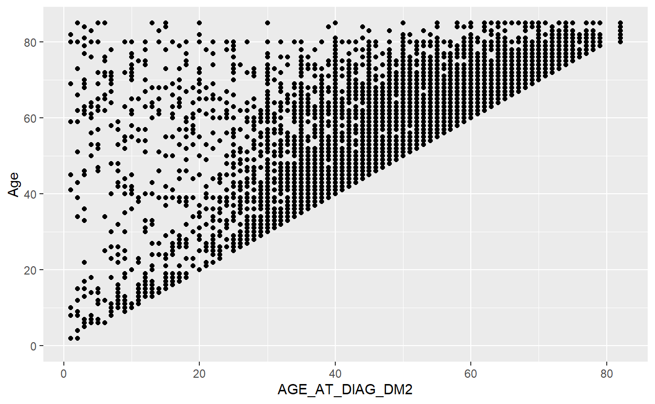 ggplot(aes(x = AGE_AT_DIAG_DM2, y = Age)) +
