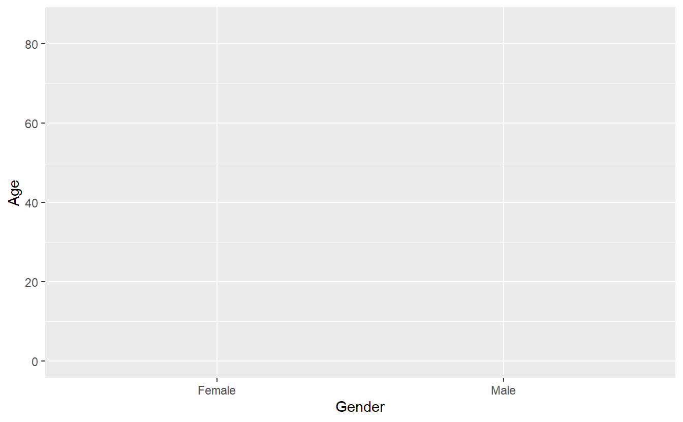 This means we are now plotting a continuous variable (Age) against a categorical one (Gender). But the thing to note is that the rest of the code stays exactly the same, all we did was change the x = argument