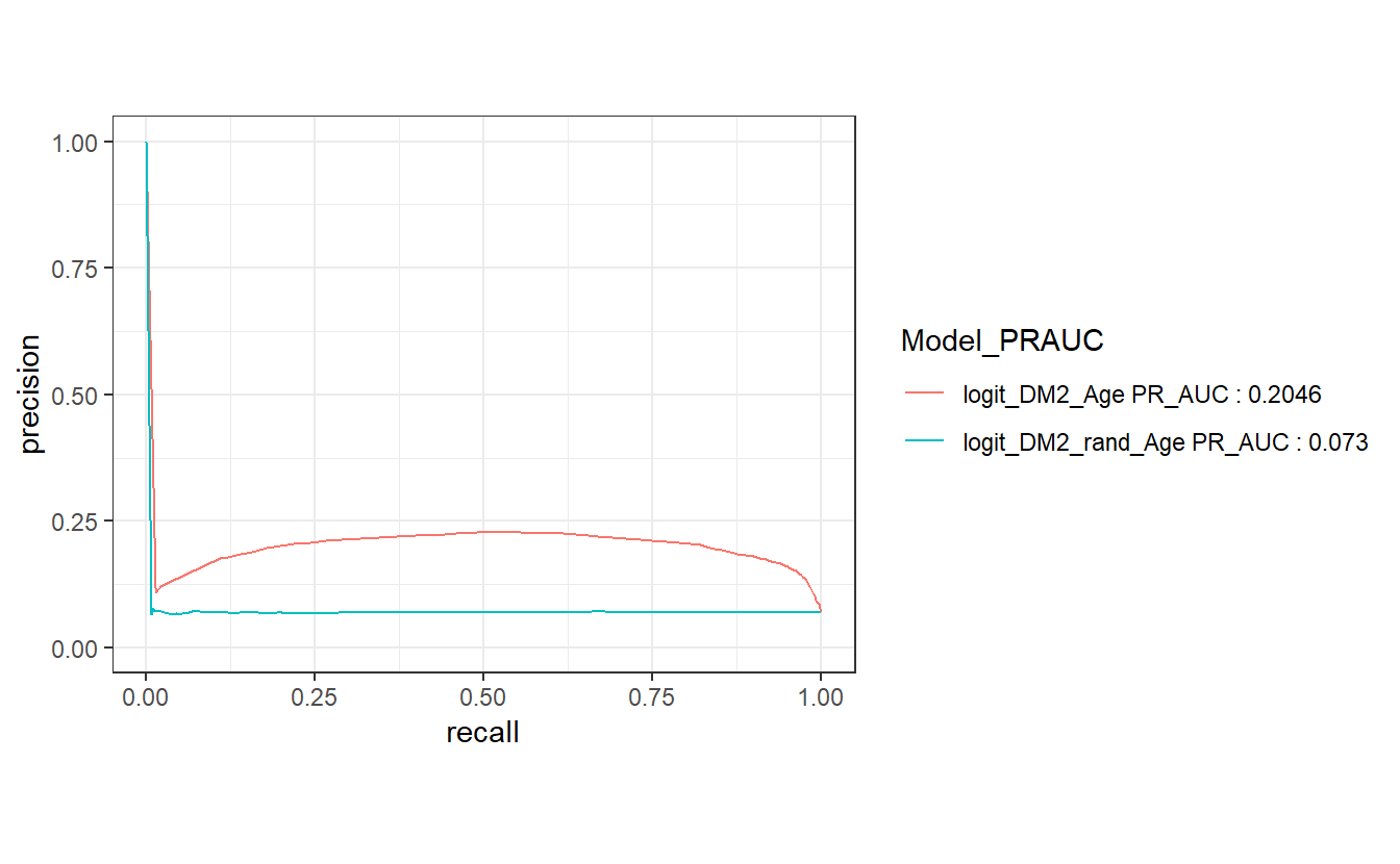 #> 2 logit_DM2_rand_Age 0.0730 logit_DM2_rand_Age PR_AUC : 0.073Notice how similar this computation is to the ROC above.