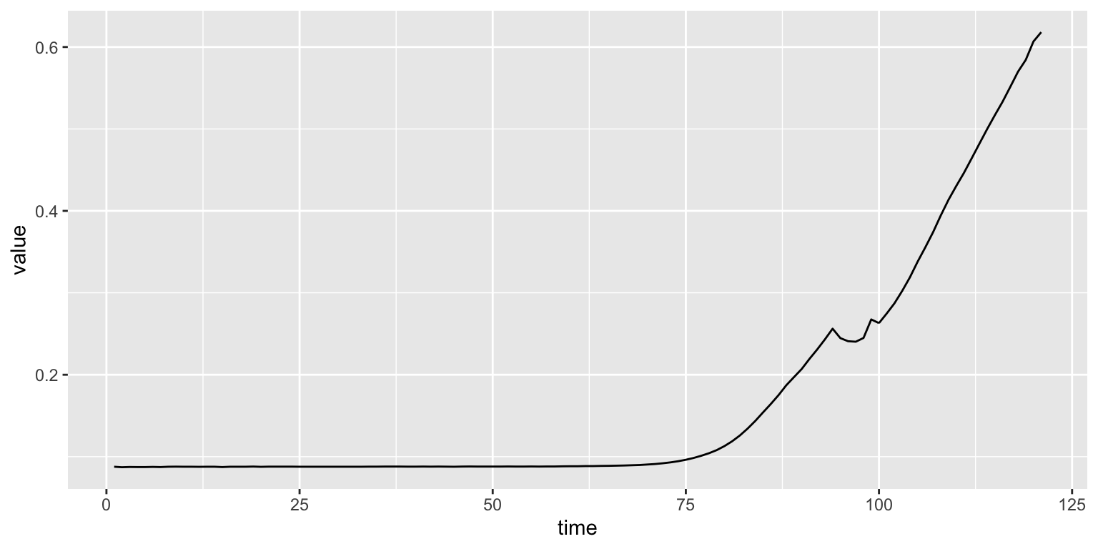 Now, what if we want to make something more complex? Here the table in long format really shines. So far we have been plotting two variables: time and growth.