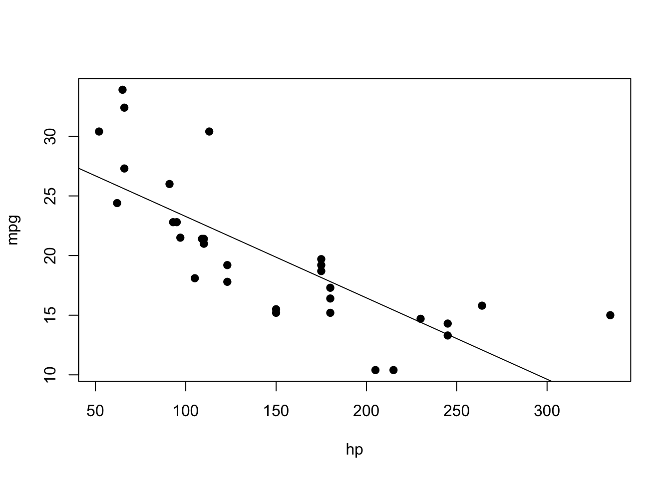 abline(lm(data$mpg ~ data$hp))