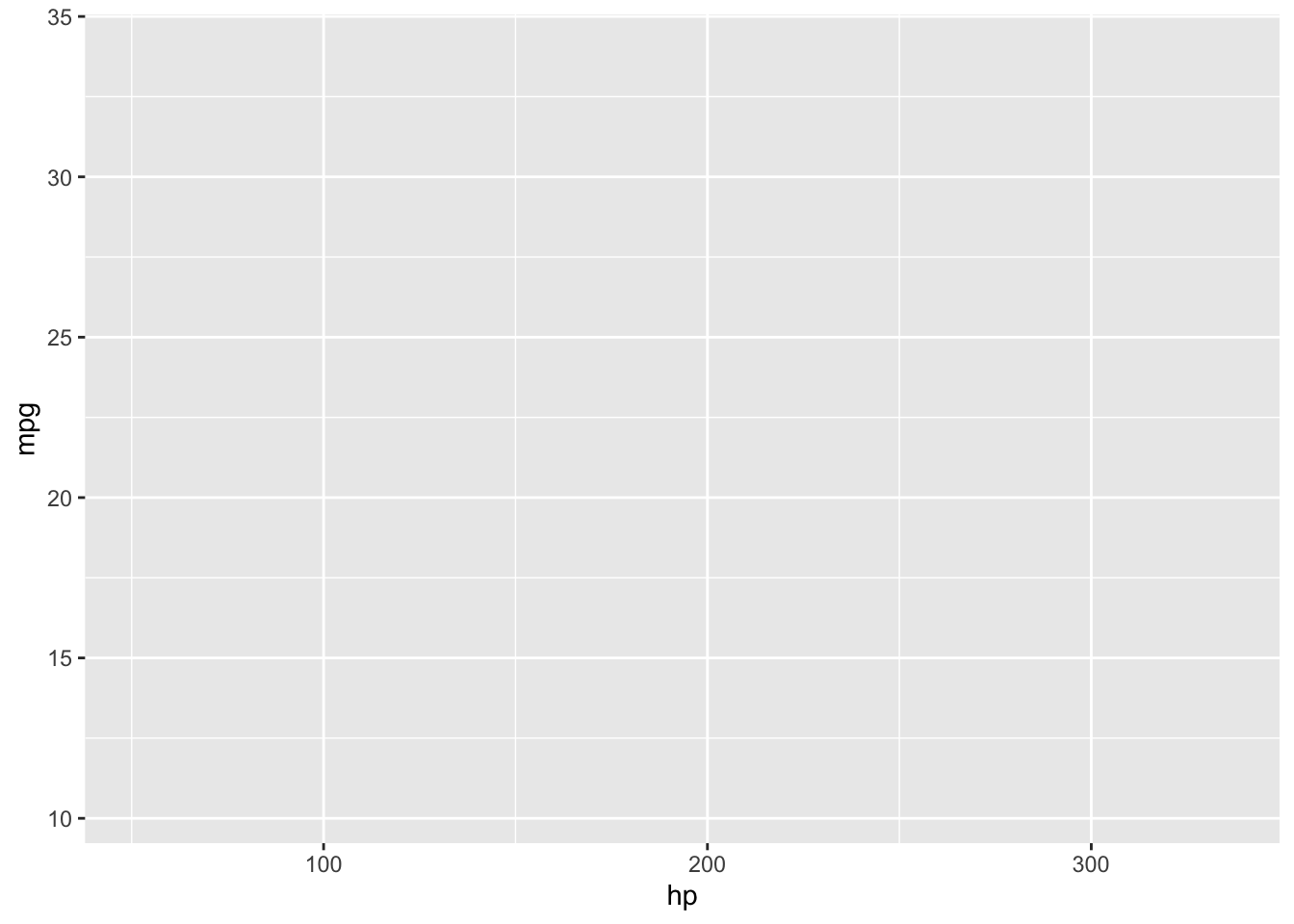 ggplot(data, aes(x = hp, y = mpg))
