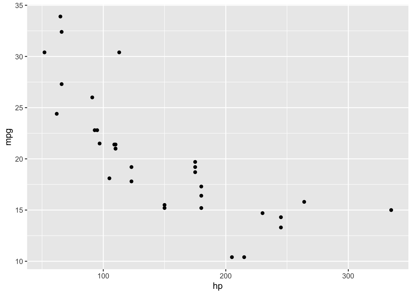 ggplot(data, aes(x = hp, y = mpg)) +