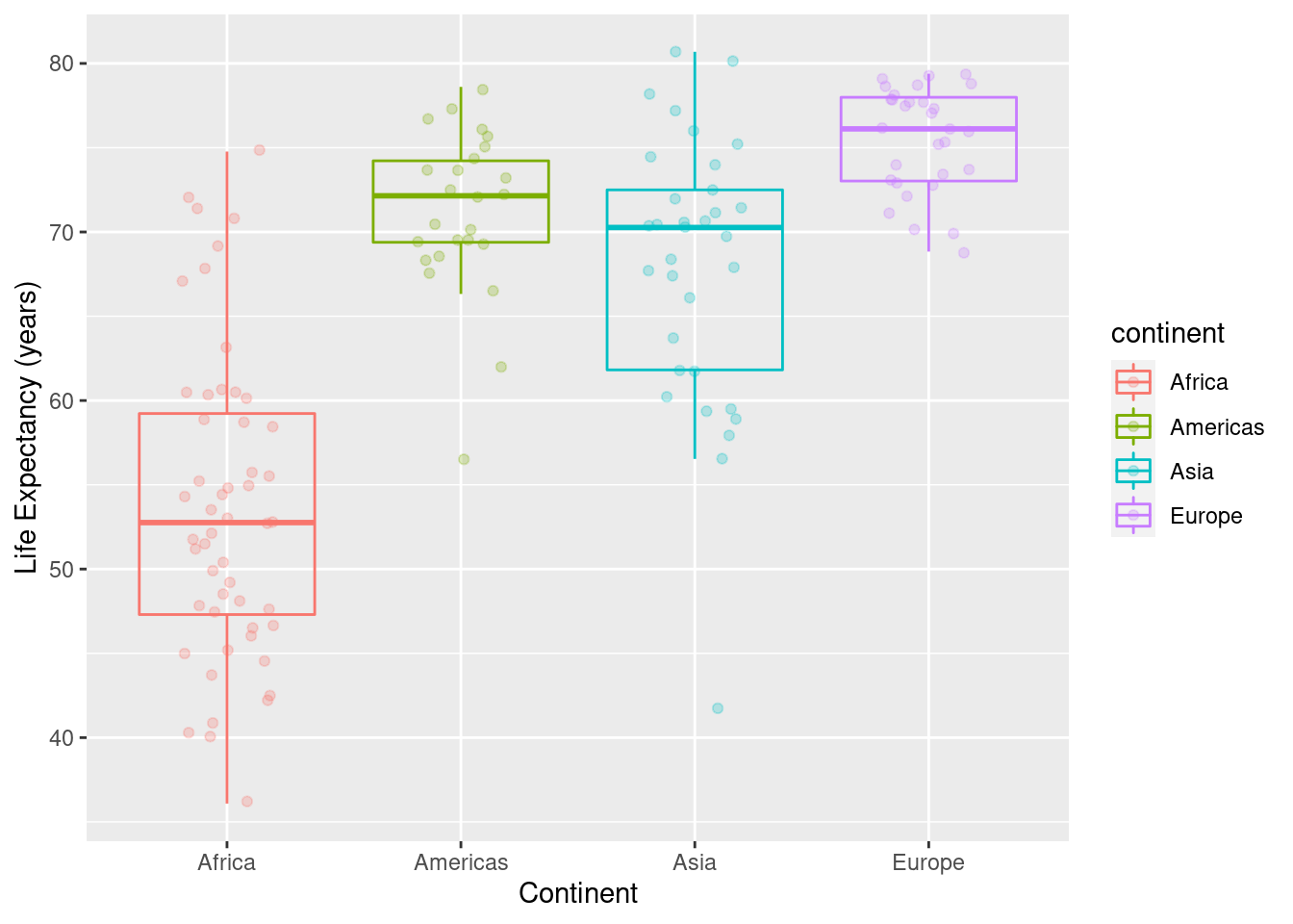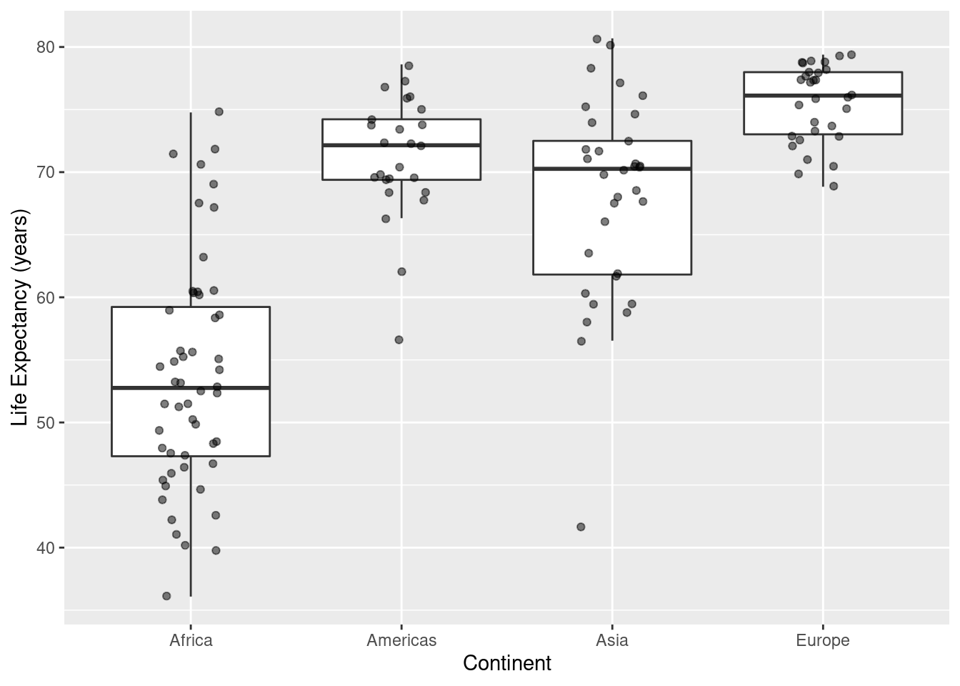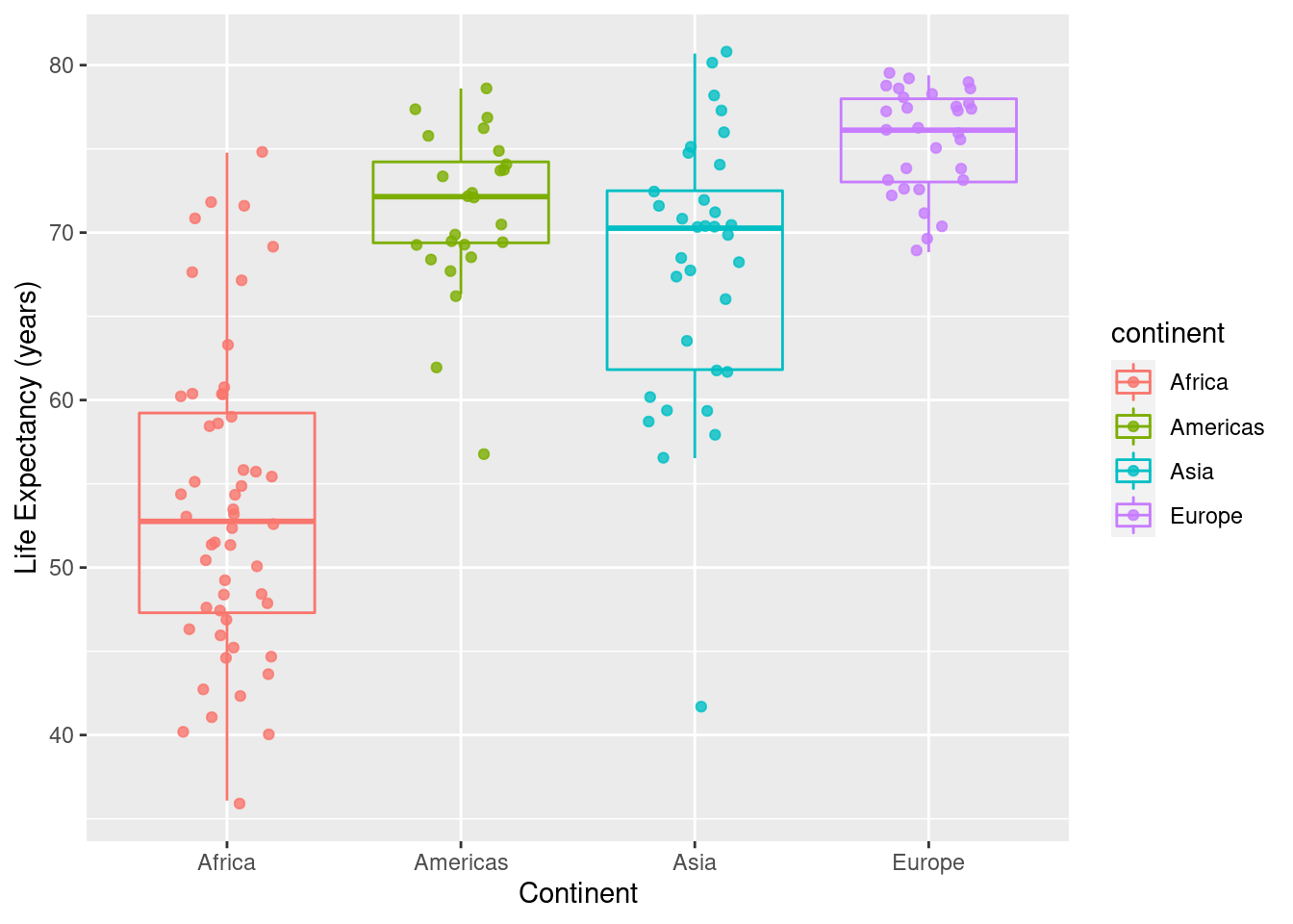 labs(x="Continent",y="Life Expectancy (years)")