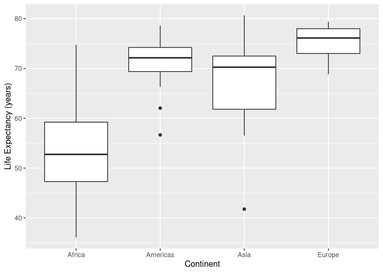 knitr::kable(statstable)| continent | meanLE | medLE | sd | iqr | min | max | n |