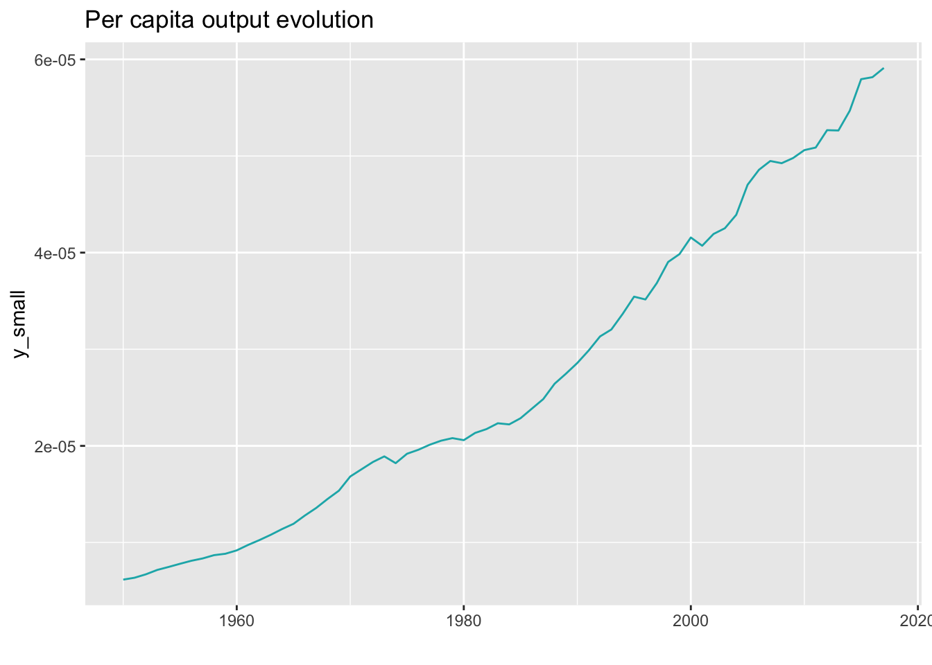 mutate(y_small=cgdpo/labor) #y_smallVeamos como ha crecido el producto per capita \((y)\) en Austria