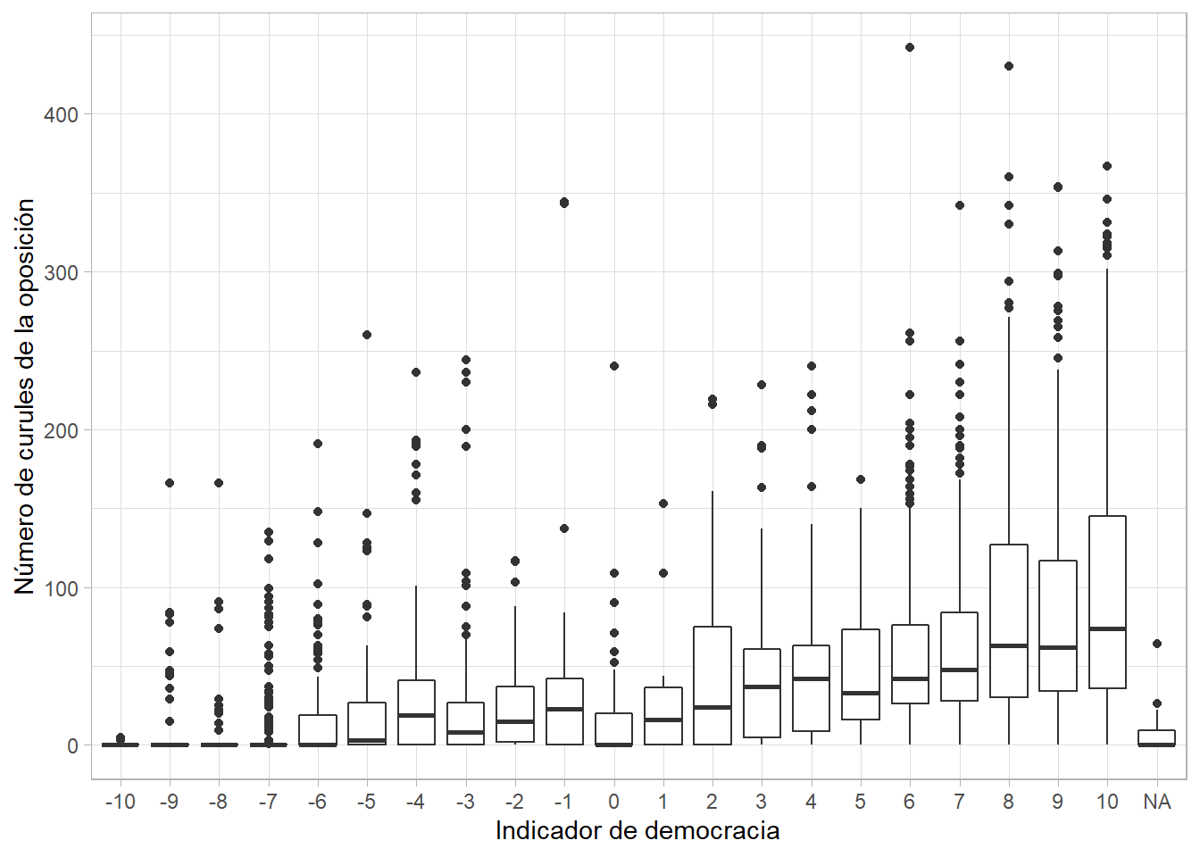 - Construir e interpretar una gráfica sencilla que muestre la relación entre el grado de autonomía de la oposición y el nivel de democracia electoral.