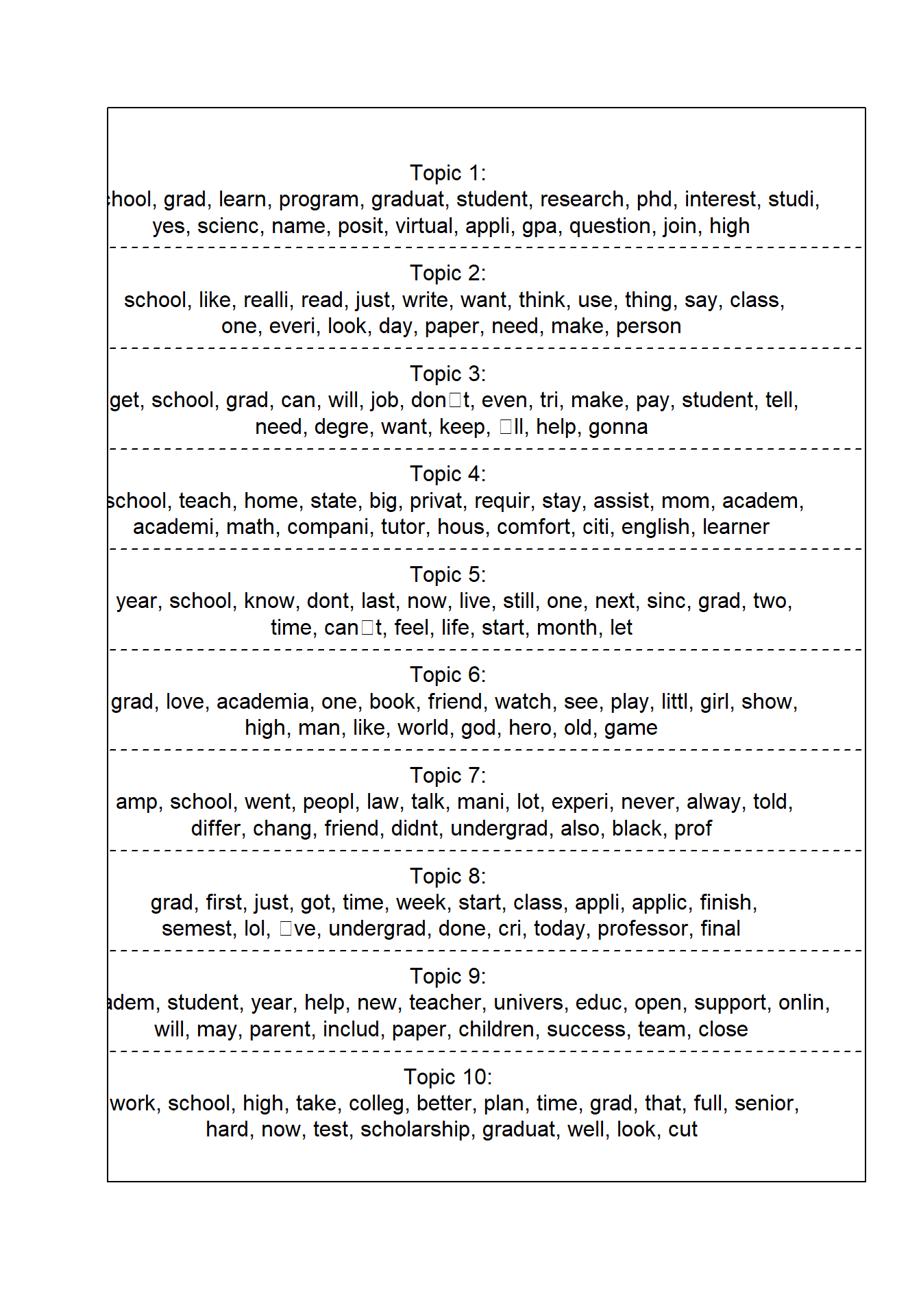 ## Highest Prob: get, school, grad, can, will, job, don<U+FFFD>t