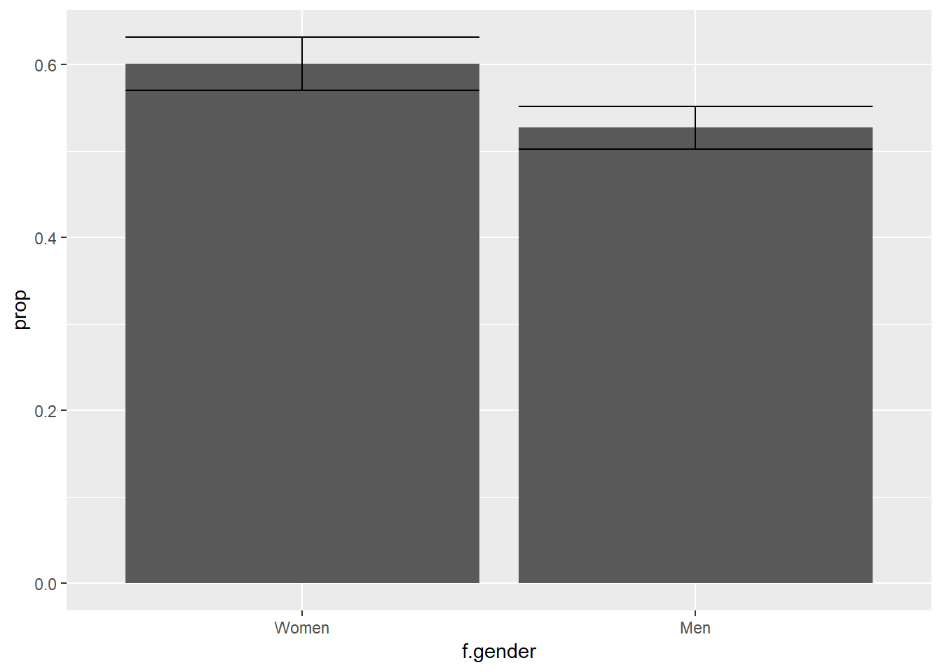 f.se <- describe(female$glbcc)$seNow that we have the standard errors for men and women, we can return to the previous data frame we constucted and add a column for the standard error. This is done using the tidyverse verb add_column(). Assign the new data frame to a new object, then print the data frame: