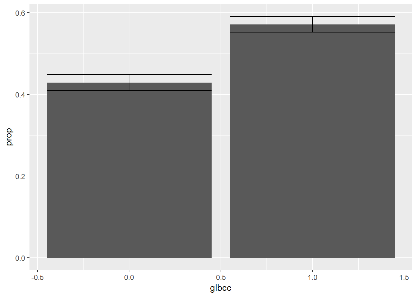 geom_errorbar(aes(ymin = prop - 1.96 * se,