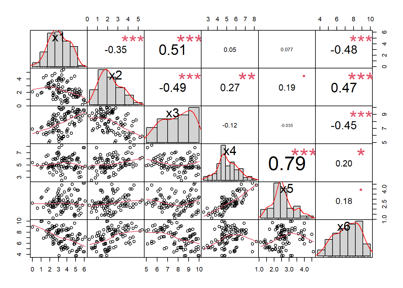 x6 -0.48 0.47 -0.45 0.20 0.18 1.00 -0.06