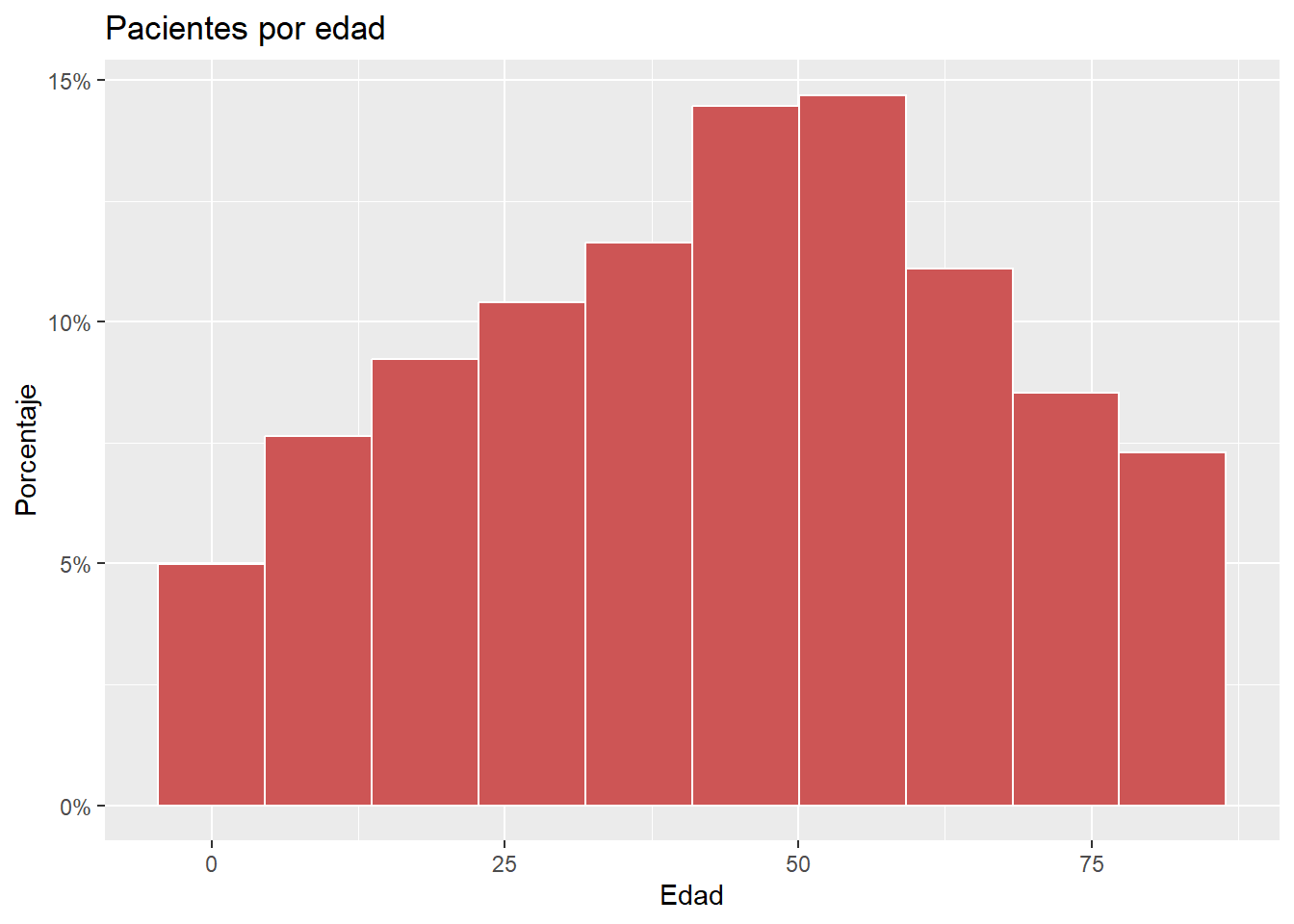 El género, estado de tabaquismo o el tipo de residencia de los pacientes son variables cualitativas. La distribución de una sola variable cualitativa generalmente se traza con un gráfico de barras, un gráfico circular, entre otros.