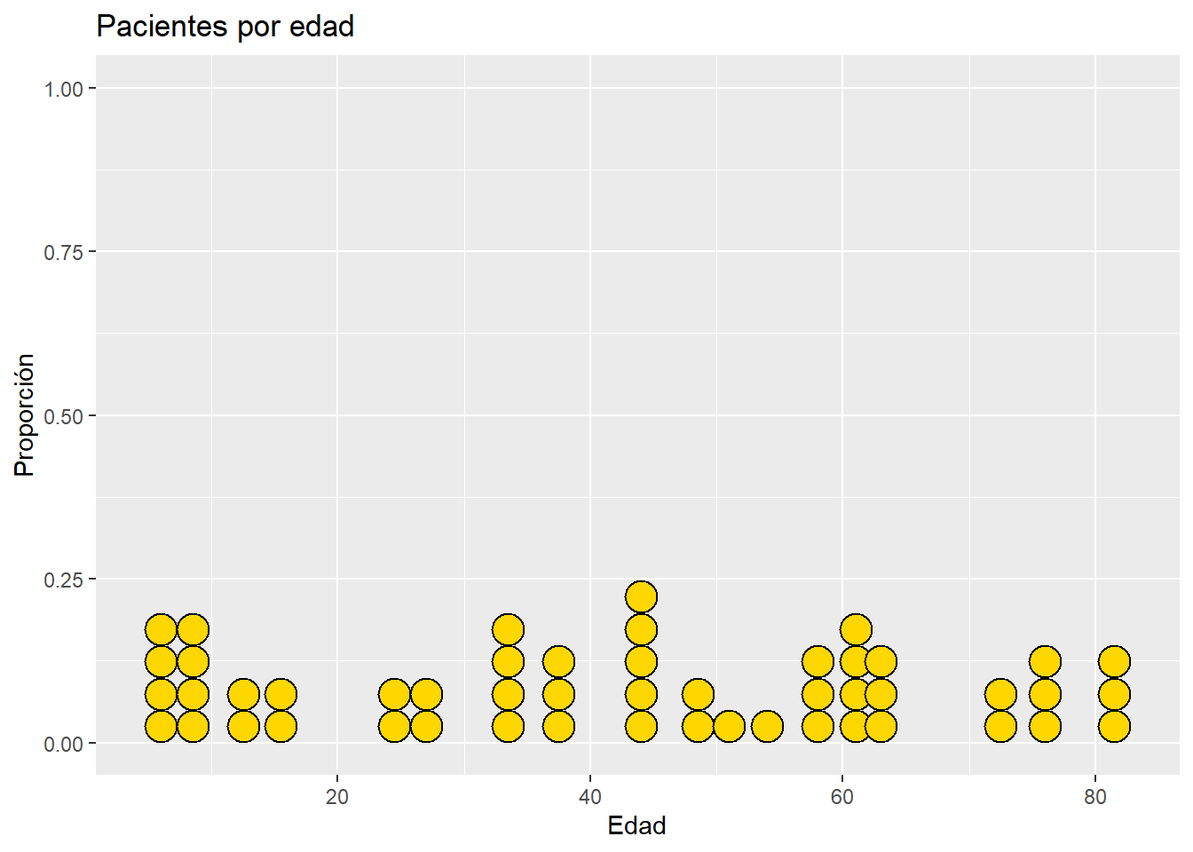 También podemos agregar el género de los pacientes usando la forma de los puntos para indicar el sexo. Aumentaremos el tamaño de los puntos y la transparencia para que los puntos individuales sean más claros.
