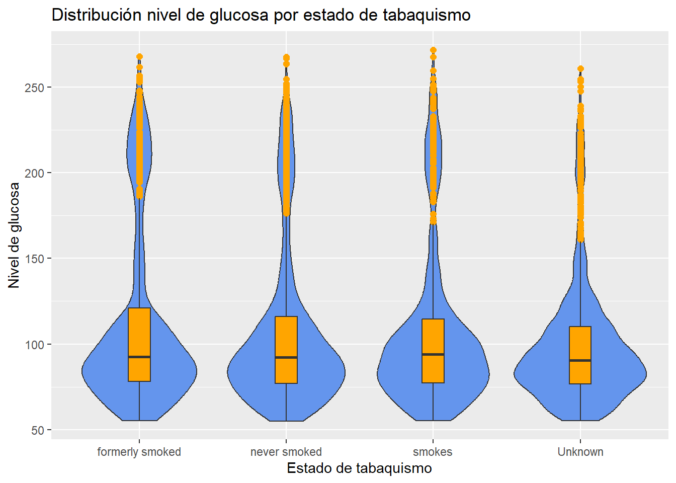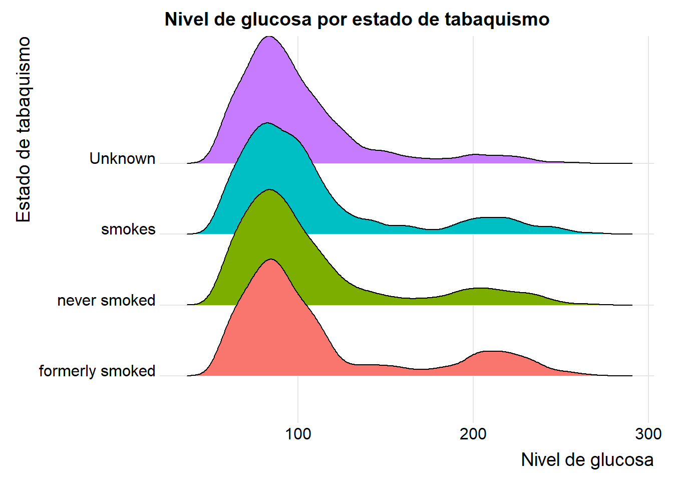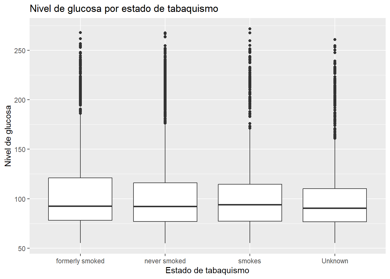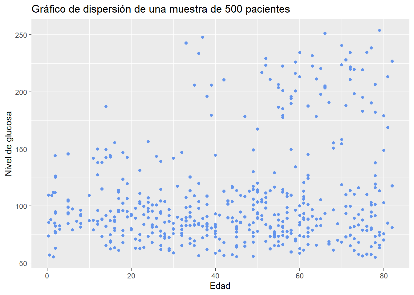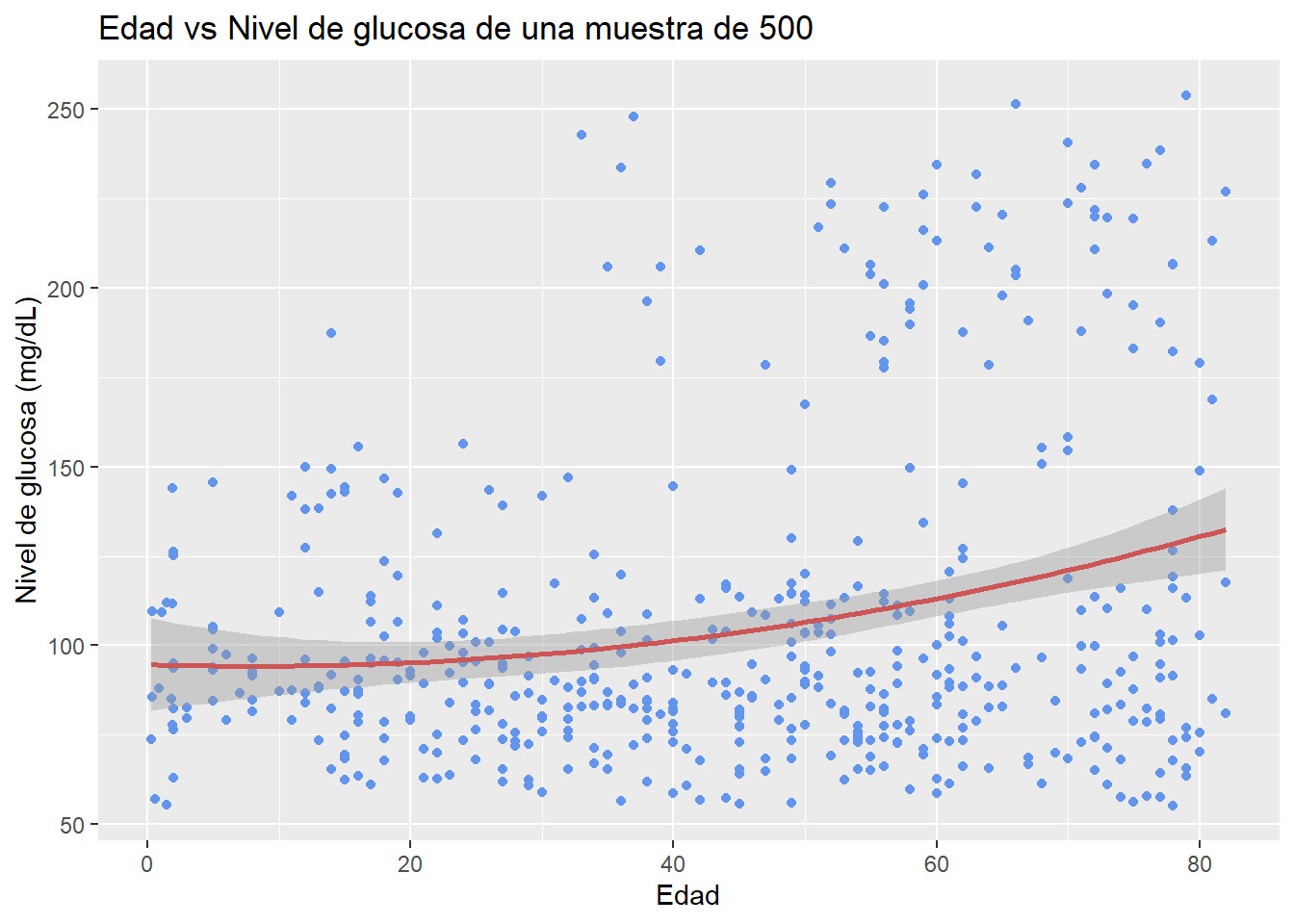 y = "Nivel de glucosa")`geom_smooth()` using formula = 'y ~ x'