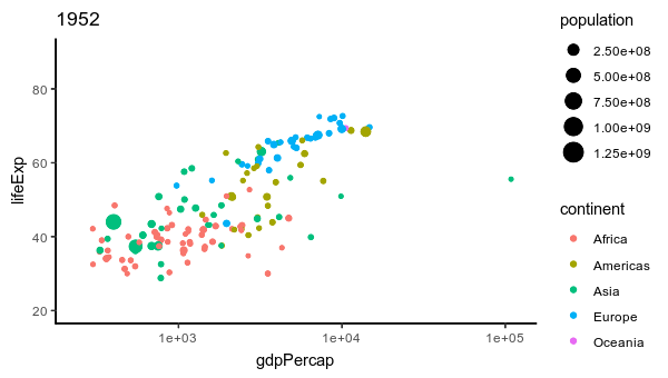 scale_x_log10(limits = range(gapminder$gdpPercap)) + ggtitle(data$year) + theme_classic()