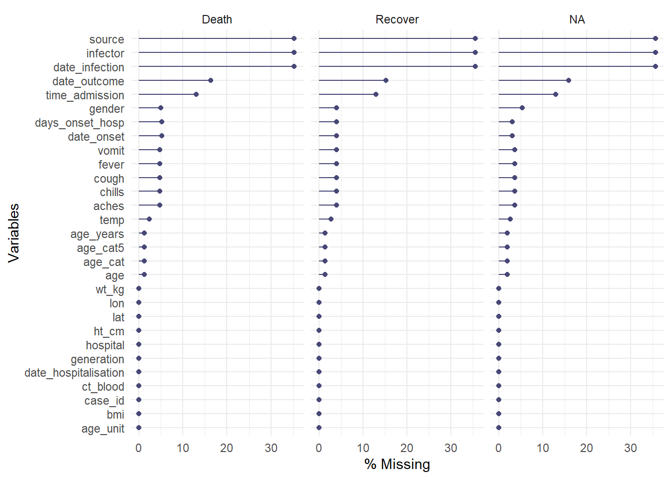 $ outcome : chr NA "Recover" "Recover" NA ...