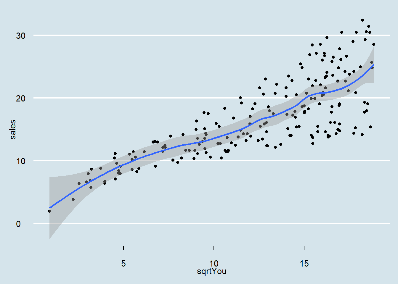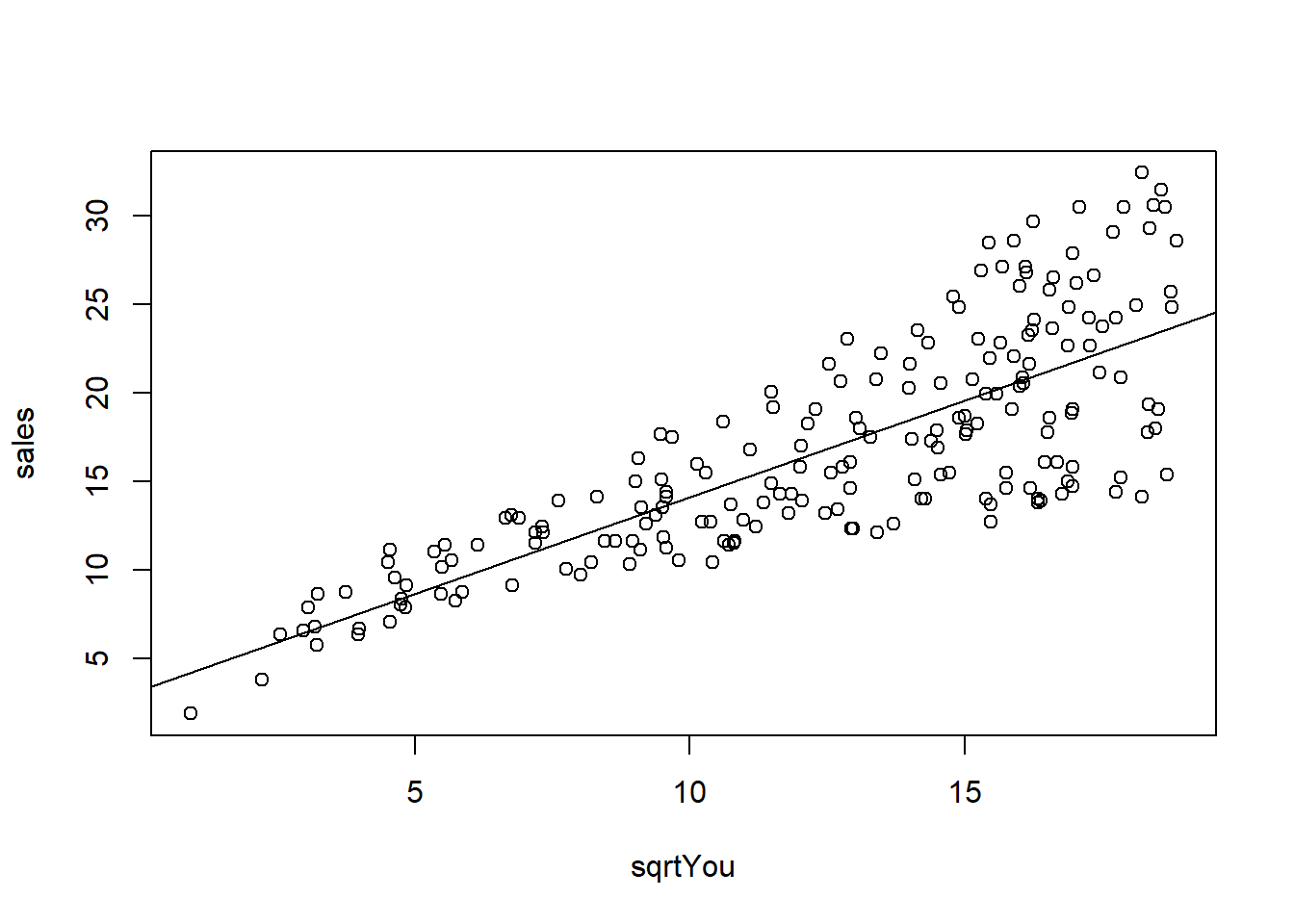 model = lm(sales ~ sqrtYou, data = dados03_mod)