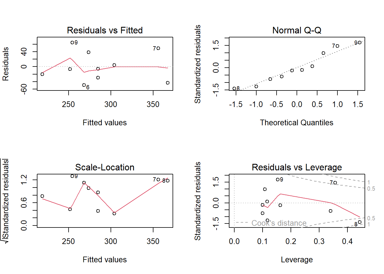 ## Residual standard error: 41.33 on 8 degrees of freedom