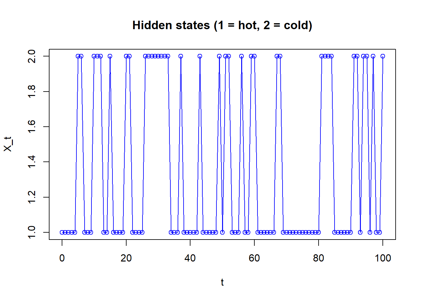 viterbi(hmm, observations) [1] "hot" "hot" "hot" "hot" "cold" "hot" "hot" "cold" "cold" "cold"