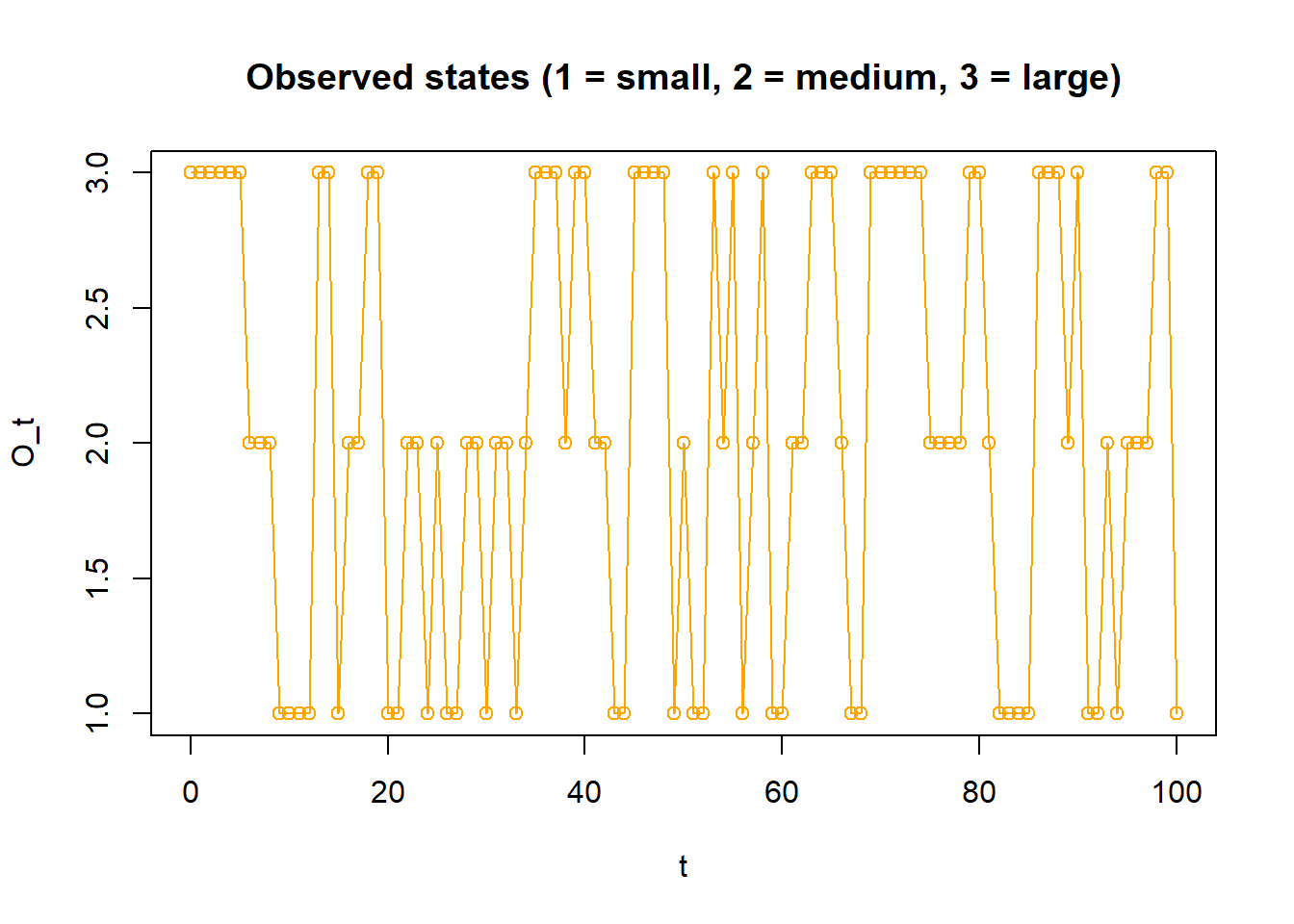 main = "Observed states (1 = small, 2 = medium, 3 = large)")