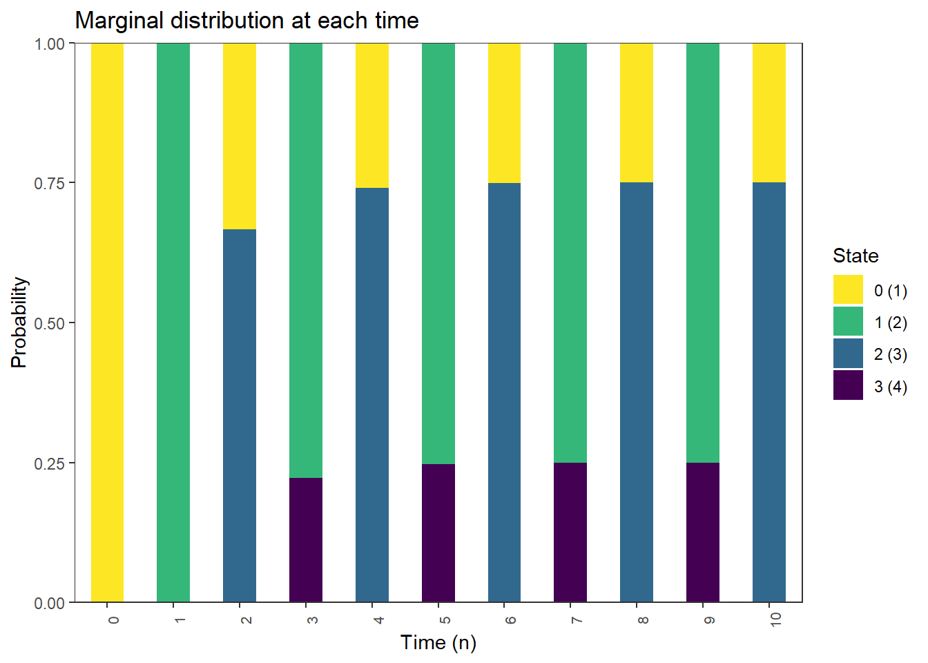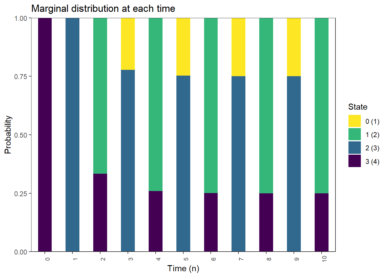 pi_0 %*% (P %^% 3) [,1] [,2] [,3] [,4]