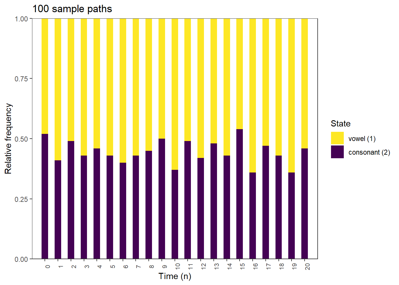 plot_DTMC_simulated_marginal_bars <- function(initial_distribution, transition_matrix, state_names, last_time, n_paths) {