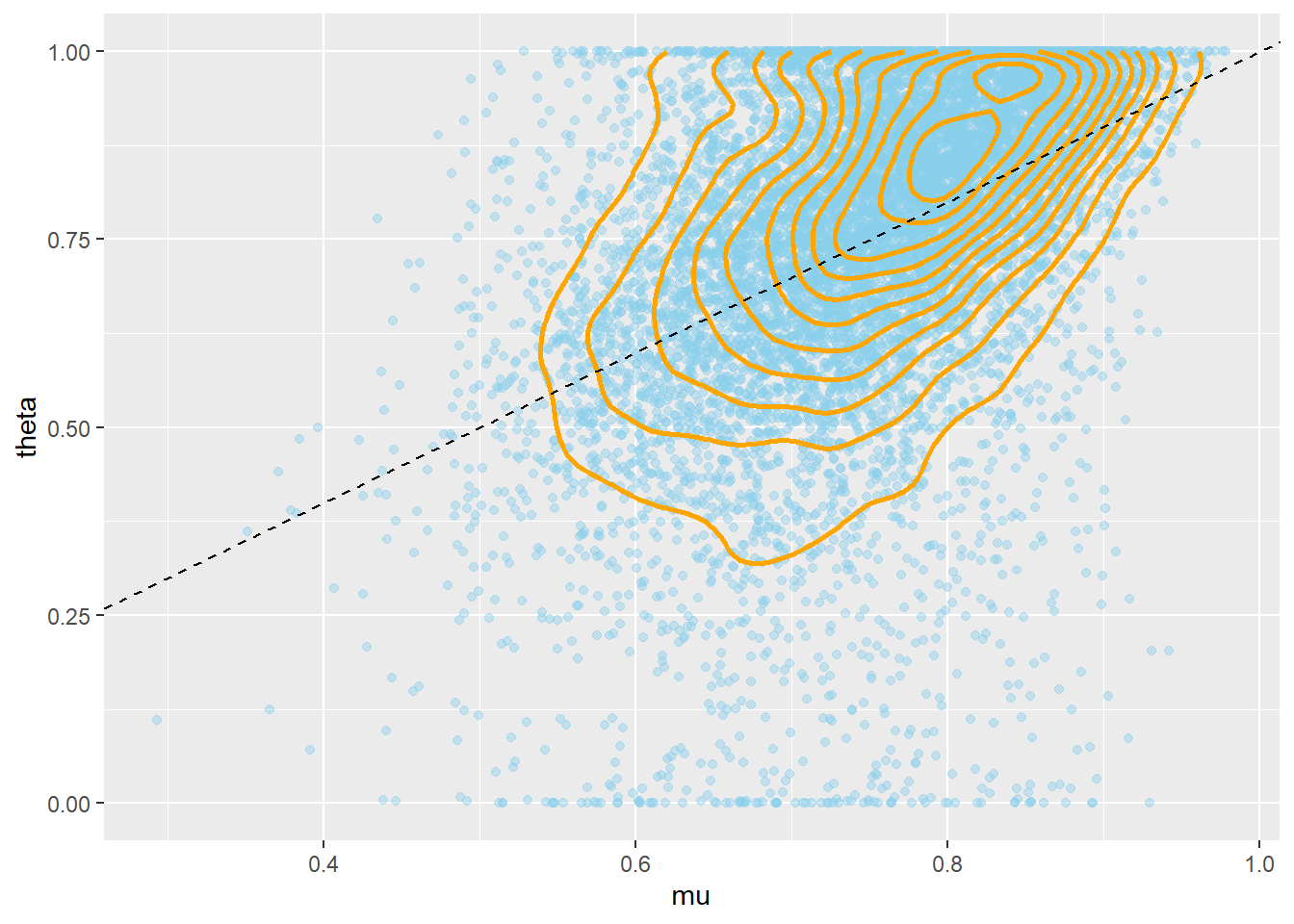 - In this model \(\mu\) and \(\theta\) are dependent. Why is this dependence useful?