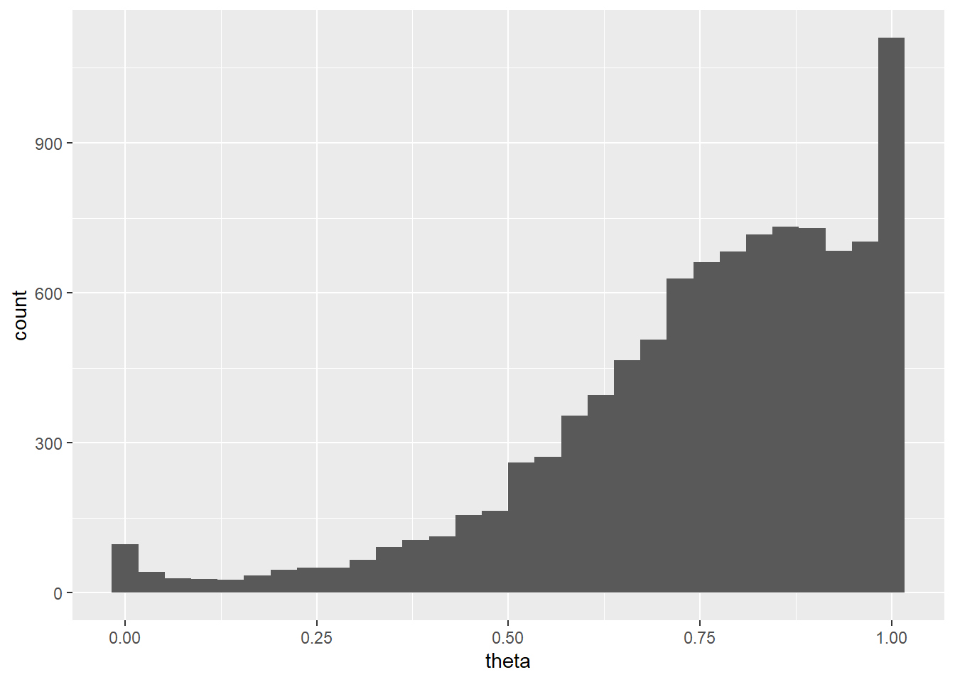 theta = rbeta(N, mu * kappa, (1 - mu) * kappa)