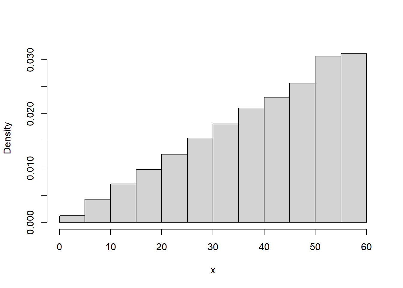 \[ f_X(x) = (2/3600) x, \qquad 0<x<60. \]
