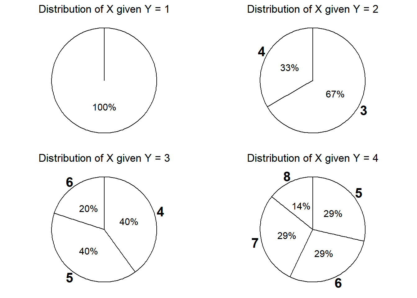 - Find \(\text{E}(X|Y = y)\) for each possible value \(y\) of \(Y\).