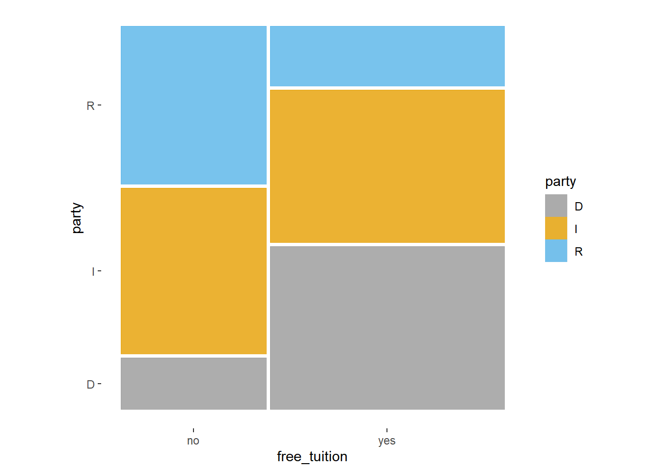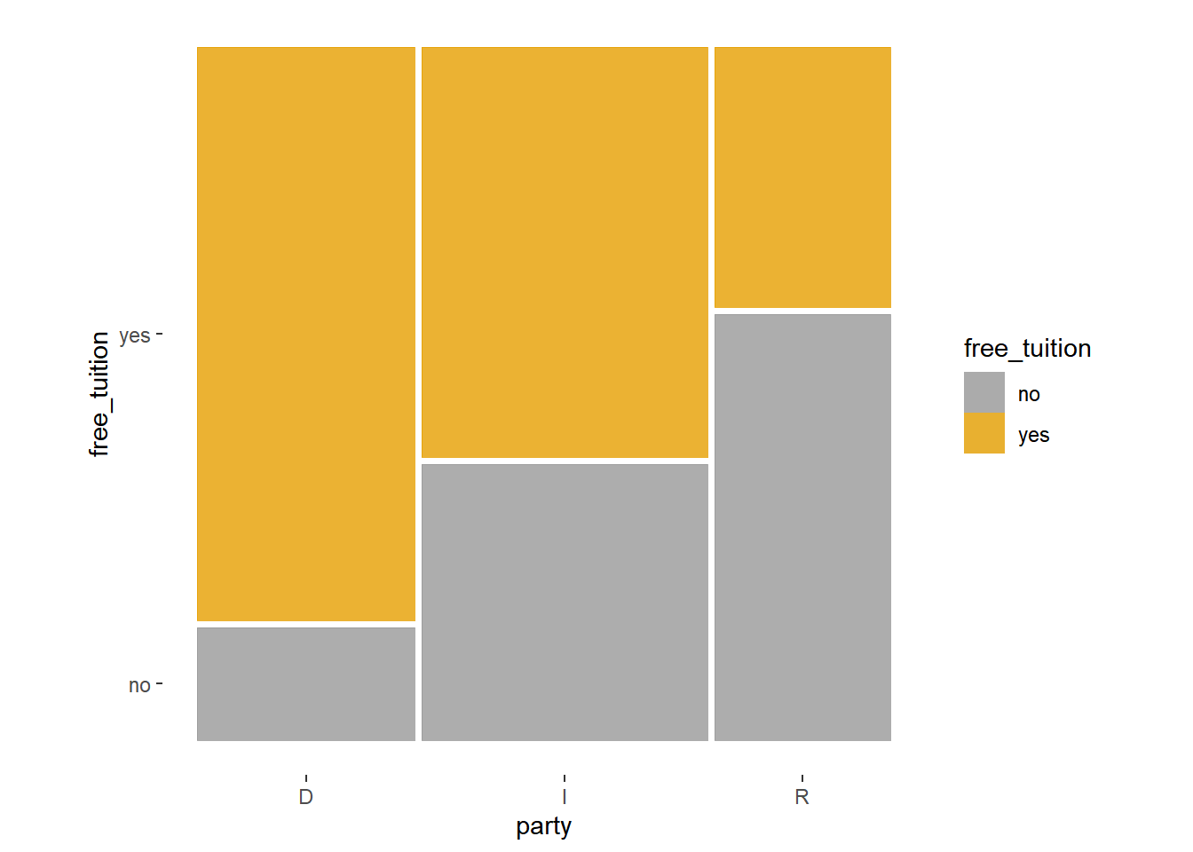 geom_mosaic(aes(x = product(party, free_tuition),