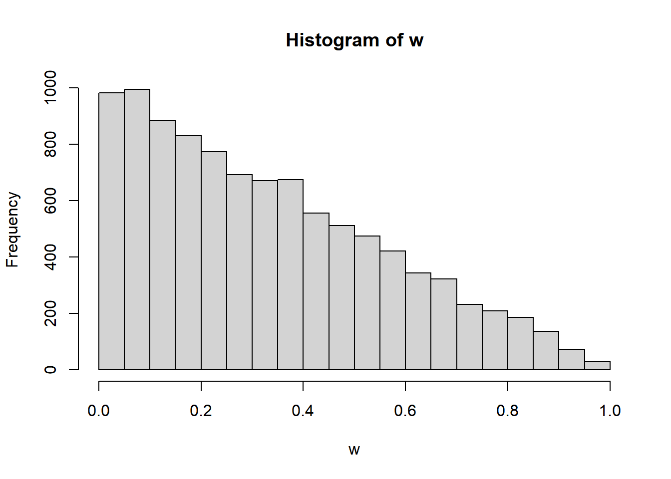 - Find an expression for the cdf of \(W\). Set up an integral, but sketch a picture and use geometry to compute.