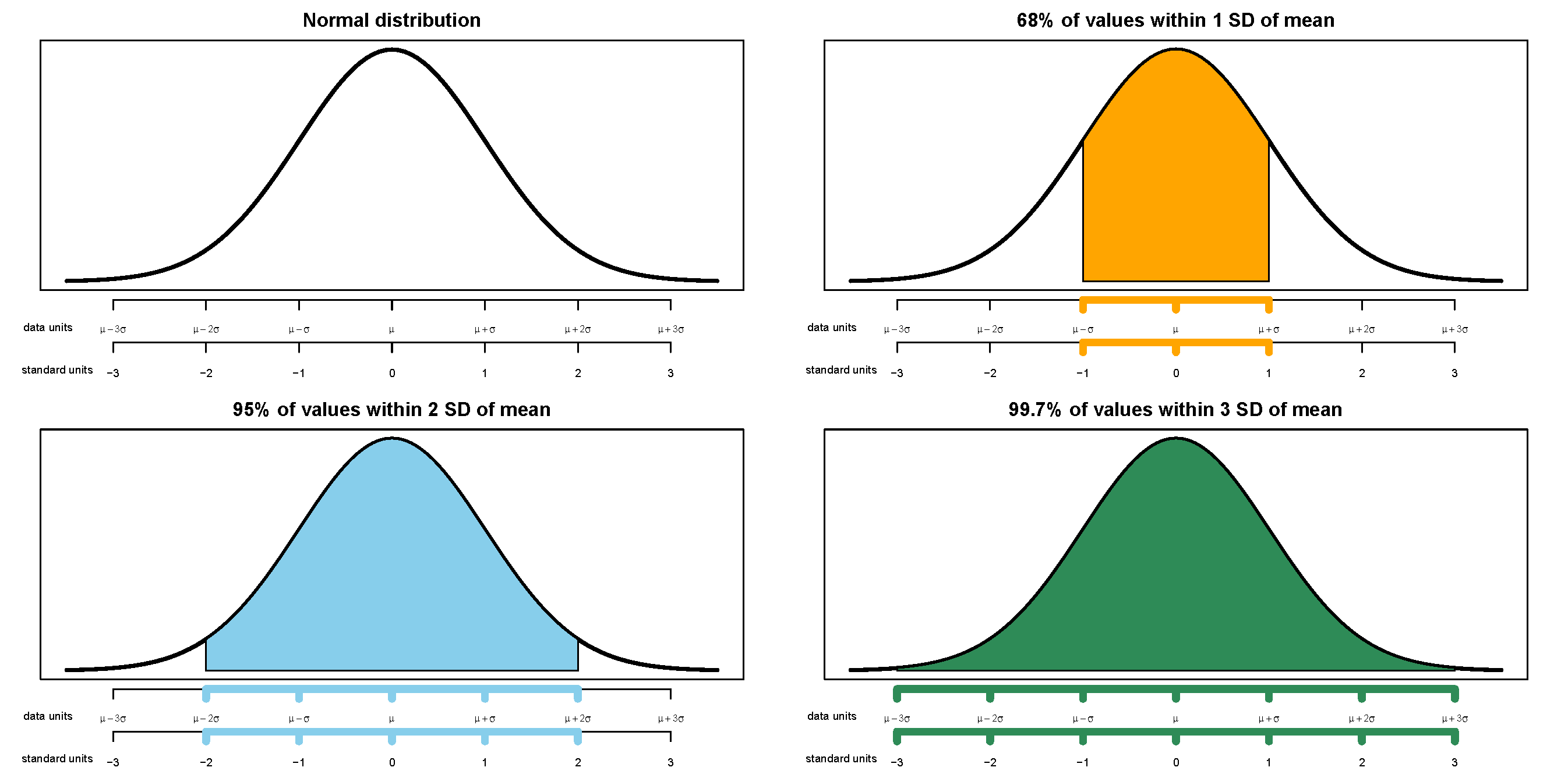 - The Normal(0, 1) distribution (mean 0, SD 1) is called the “Standard Normal” distribution