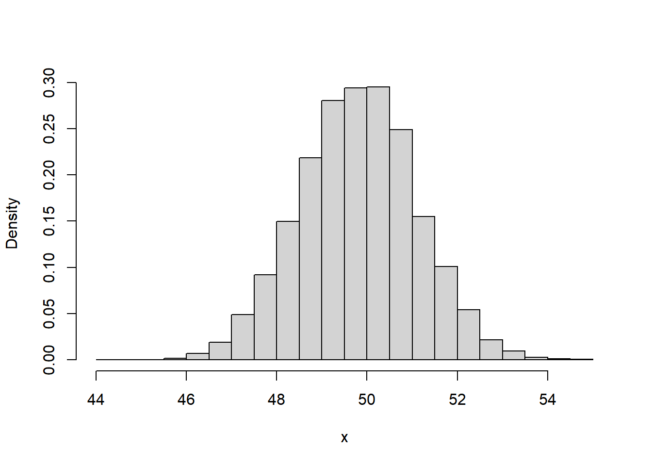 x = rnorm(N_rep, mean = 49.8, sd = 1.3)