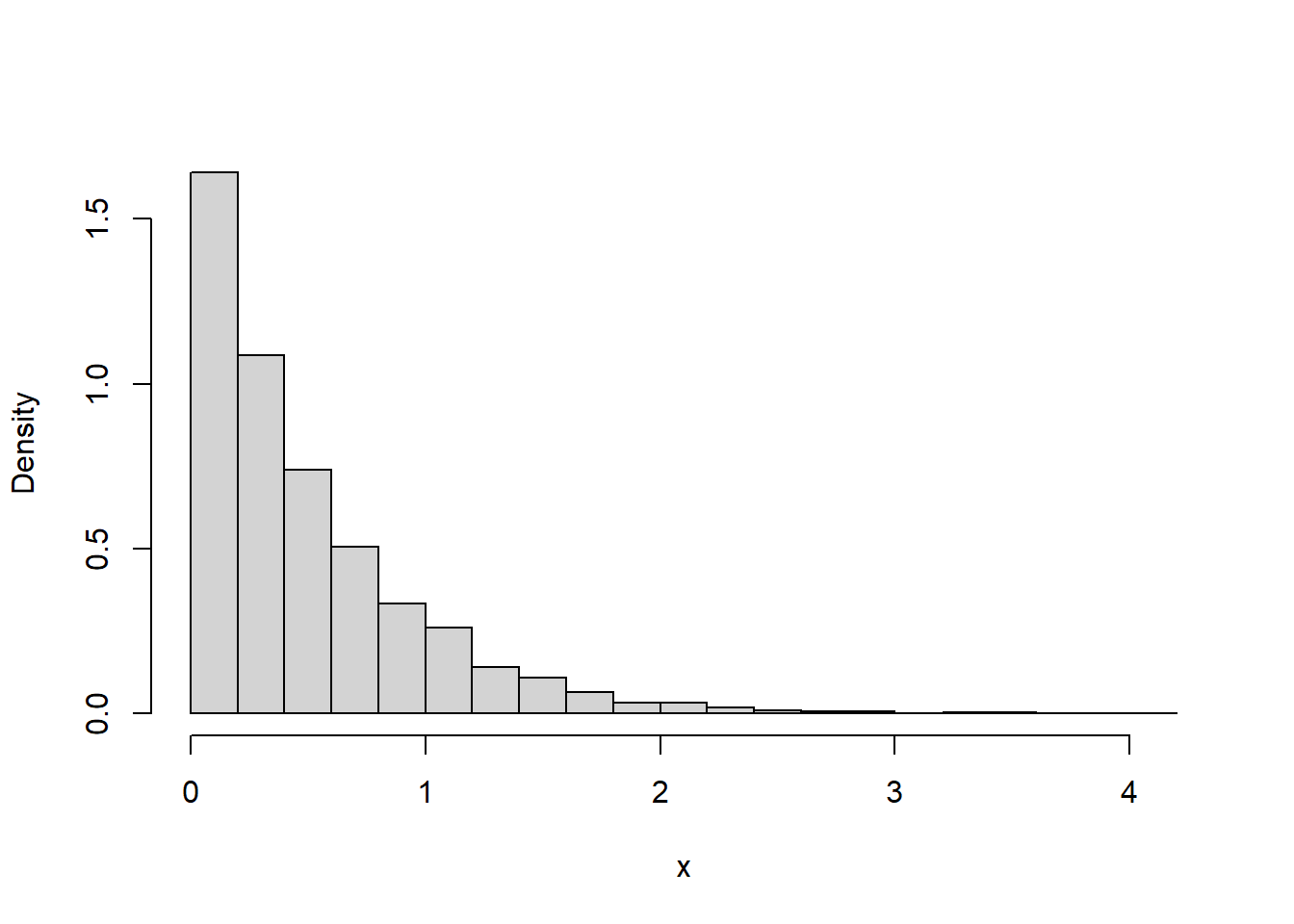 rexp(N_rep, rate) to simulate valuesdexp(x, rate) to compute the probability density functionpexp(x, rate) to compute the cumulative distribution function \(\text{P}(X \le x)\).qexp(p, rate) to compute the quantile function which returns \(x\) for which \(\text{P}(X\le x) = p\).N_rep = 10000