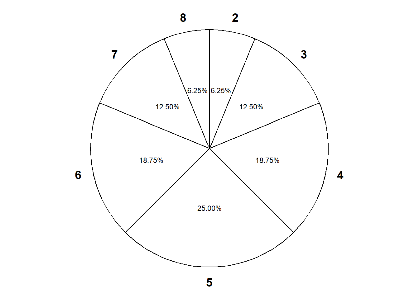 - Simulate from the distribution. Construct a spinner corresponding to the distribution of \(X\) and spin it once to generate \(x\).