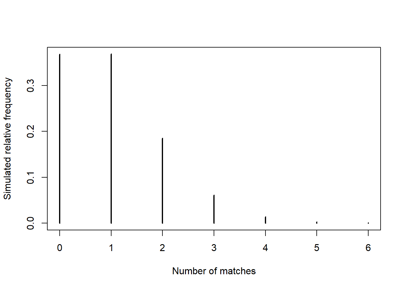 number_matches = replicate(N_rep, simulate_number_matches(n))