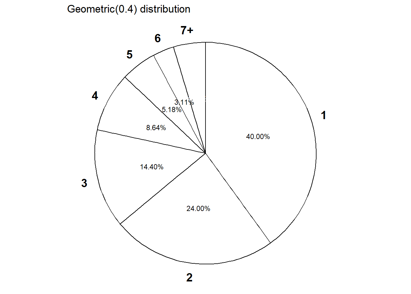 \[ p_X(x) = (1-0.4)^{x-1}(0.4), \qquad x = 1, 2, 3, \ldots \]