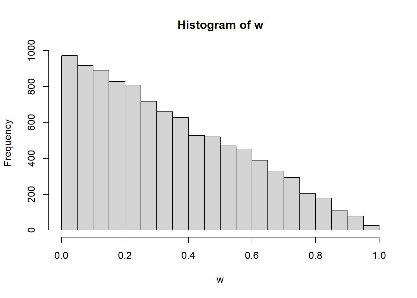 - Find an expression for the cdf of \(W\). Set up an integral, but sketch a picture and use geometry to compute.