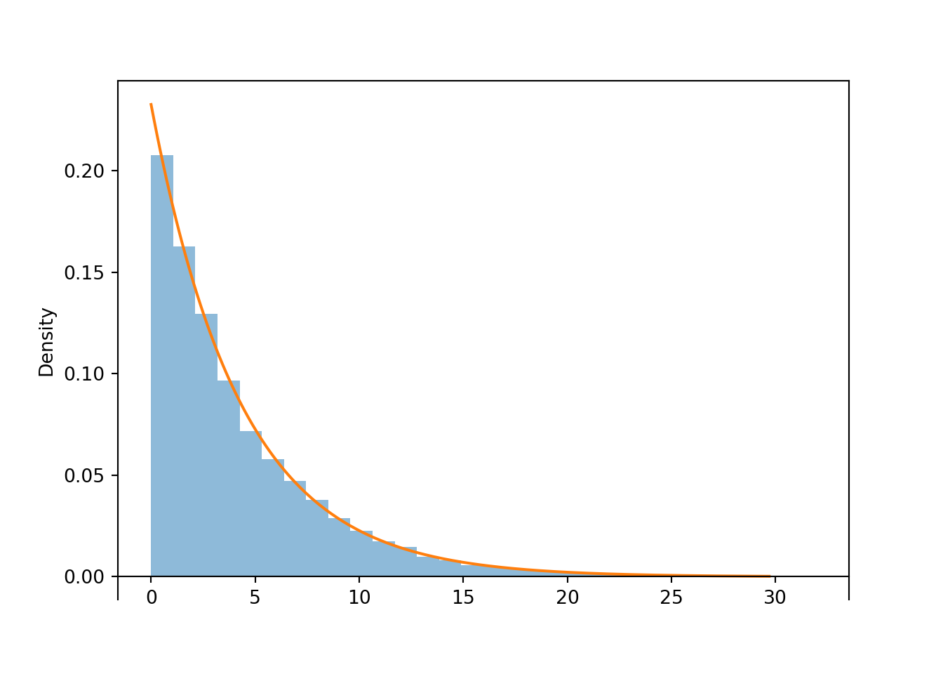 Exponential(rate = 1 / 4.3).plot() # plot the theoretical pdf